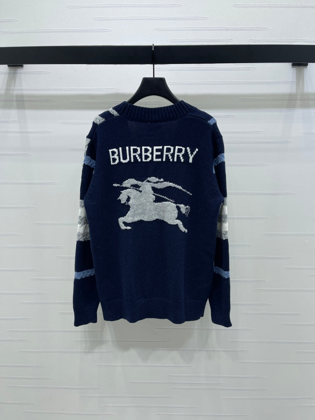 Burberry 25 V-neck Long-sleeved Cardigan Navy Blue Wool Cashmere