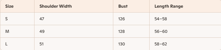- Size : S, M, L
