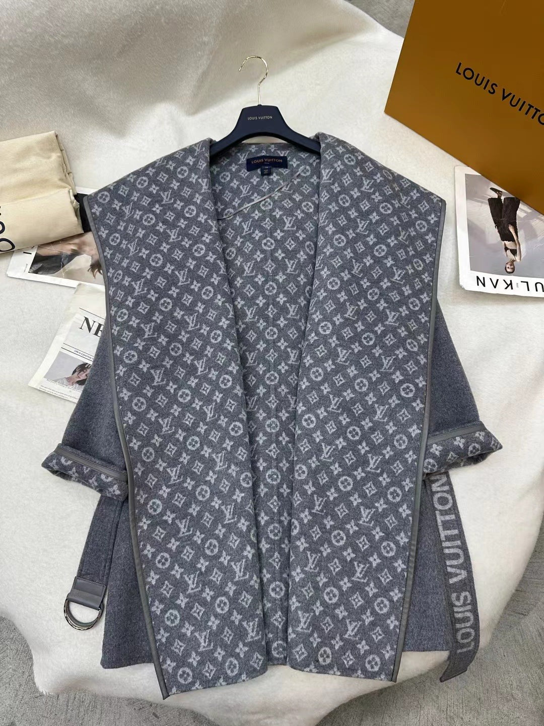 LV MONOGRAM MAXI COLLAR COAT IN GRAY WOOL