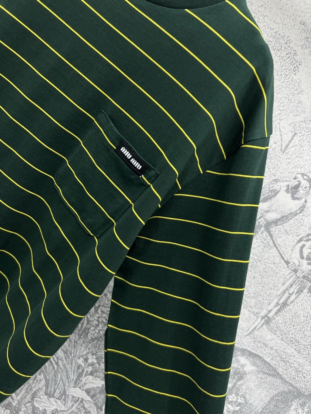 Miu Miu 25 T-shirt a maniche lunghe a righe in cotone verde