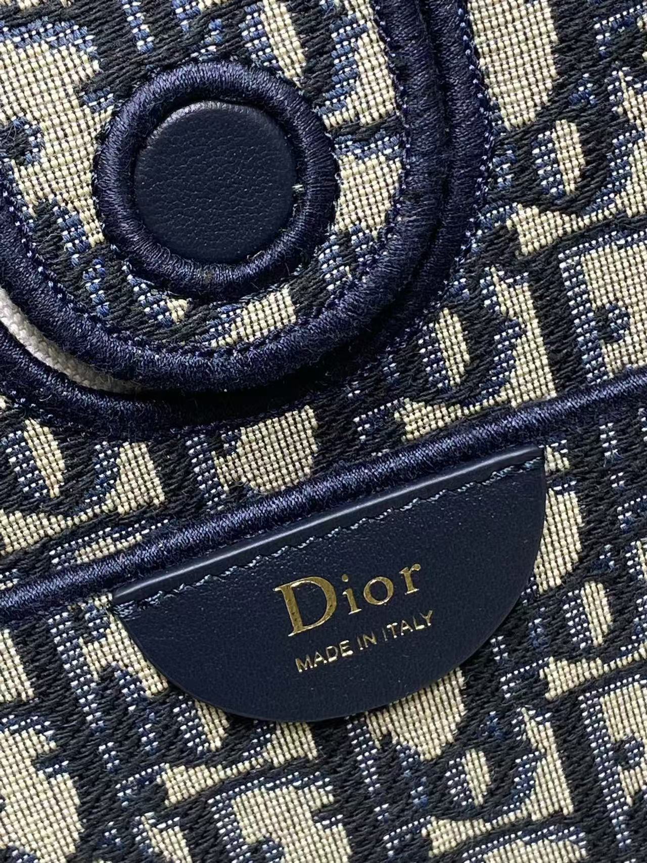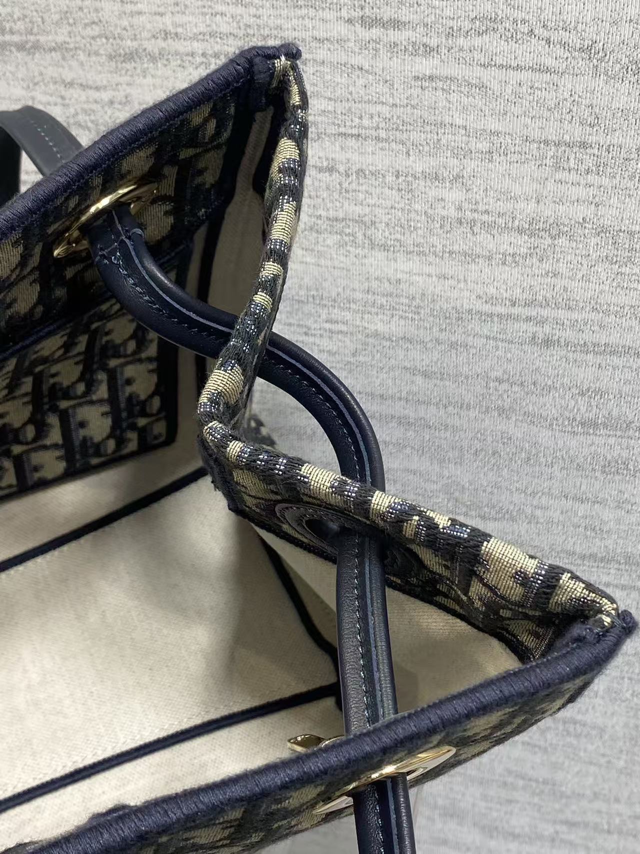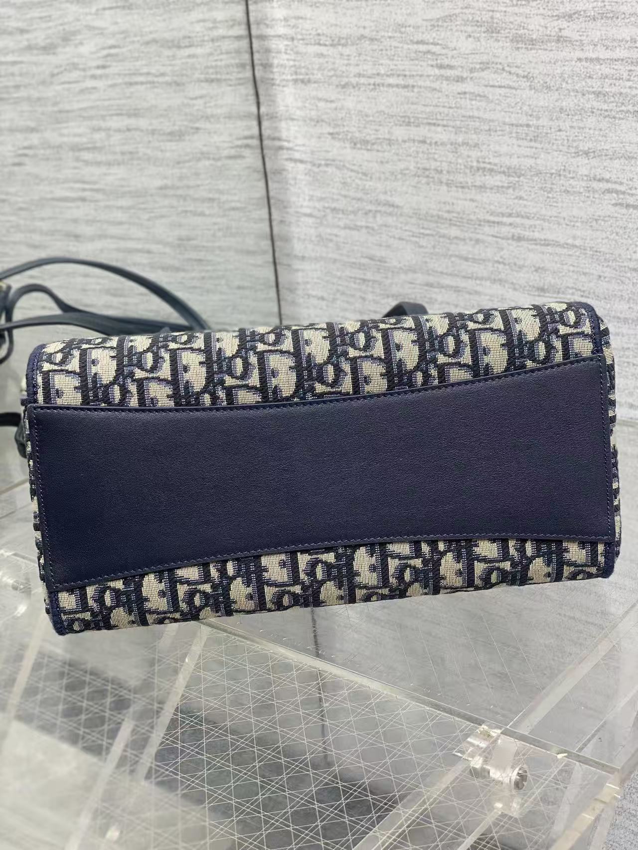 CD Medium Shopping Bag Blue Beige Oblique Jacquard Cotton Calfskin