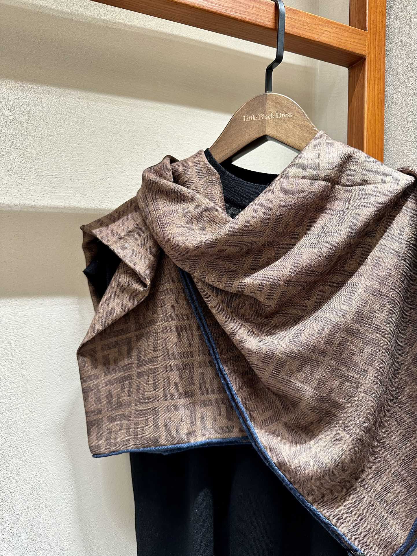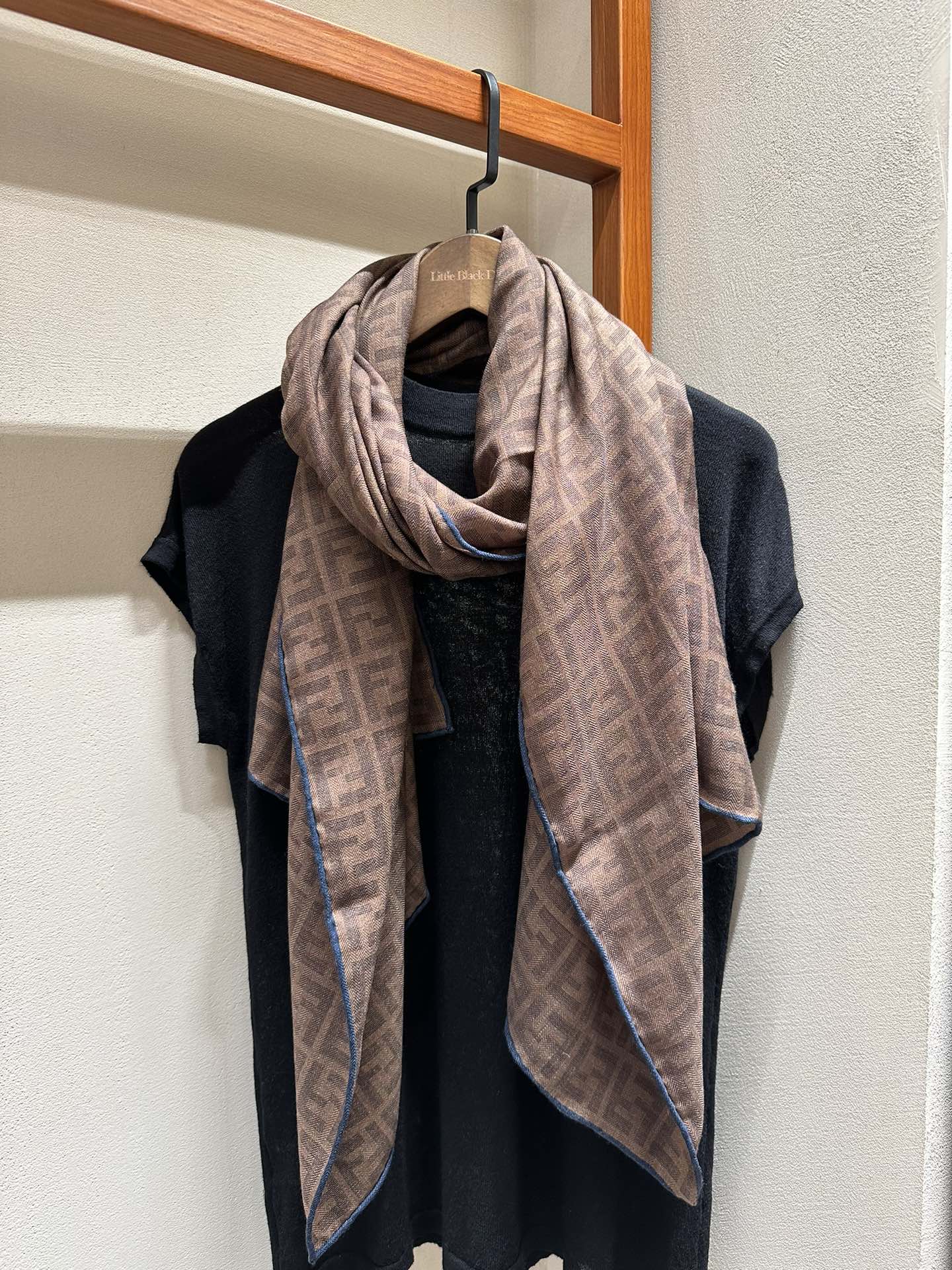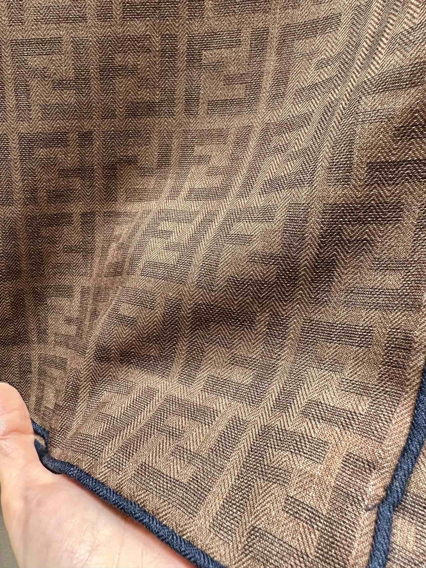 SCIALLE FF 185 CM IN SETA E LANA MARRONE CAFFÈ CON BORDO BLU 413672