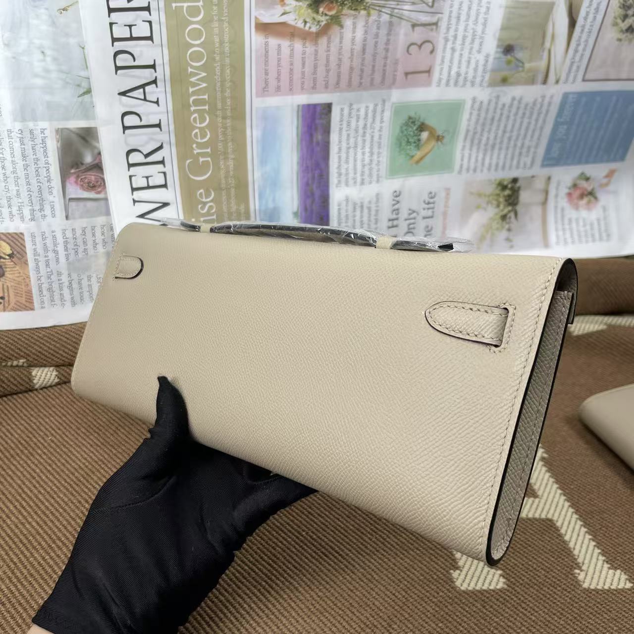 HM Kelly Cut 31 Crimson Beige Epsom Leather Gold Hardware