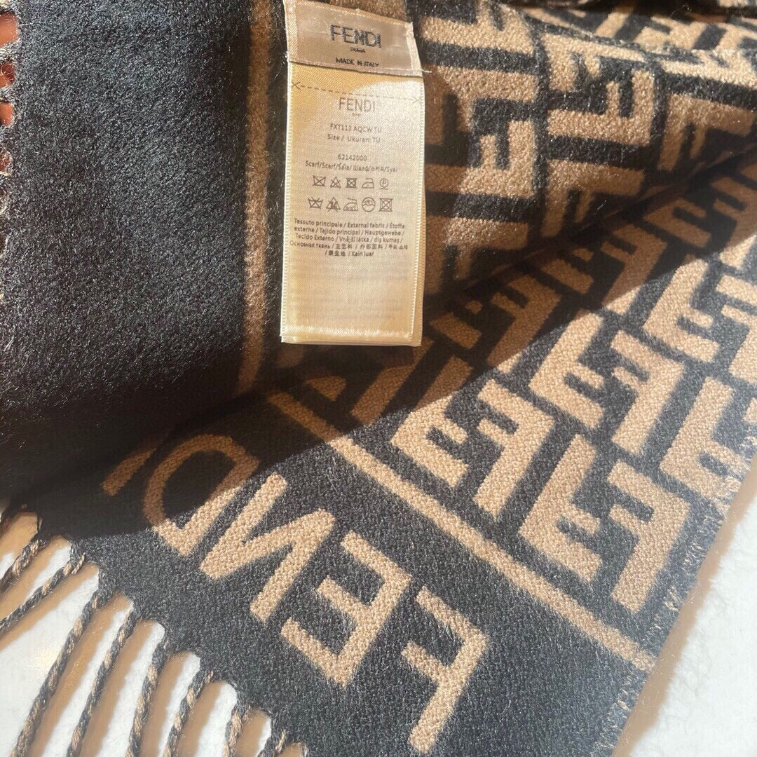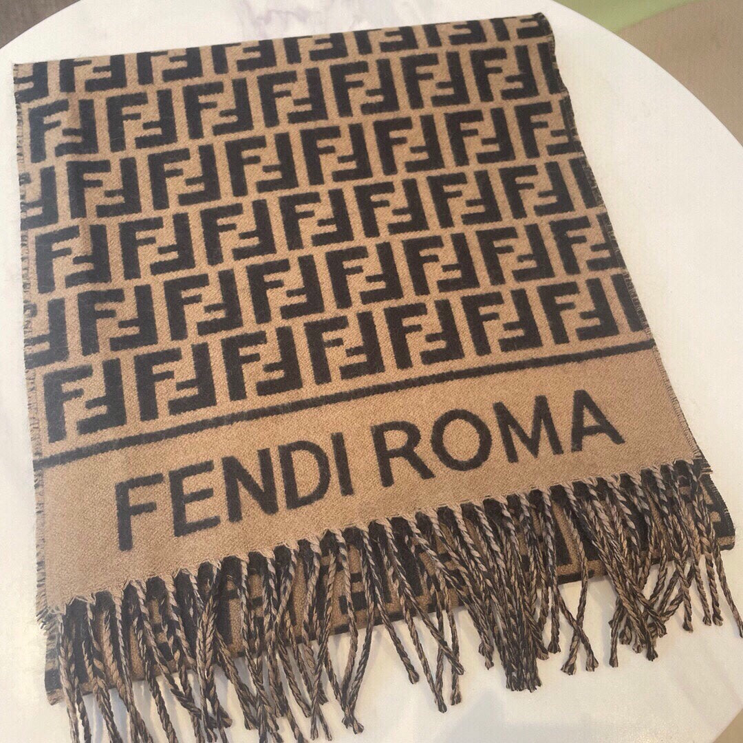 Sciarpa Roma 190 FF in misto lana nera e cashmere marrone