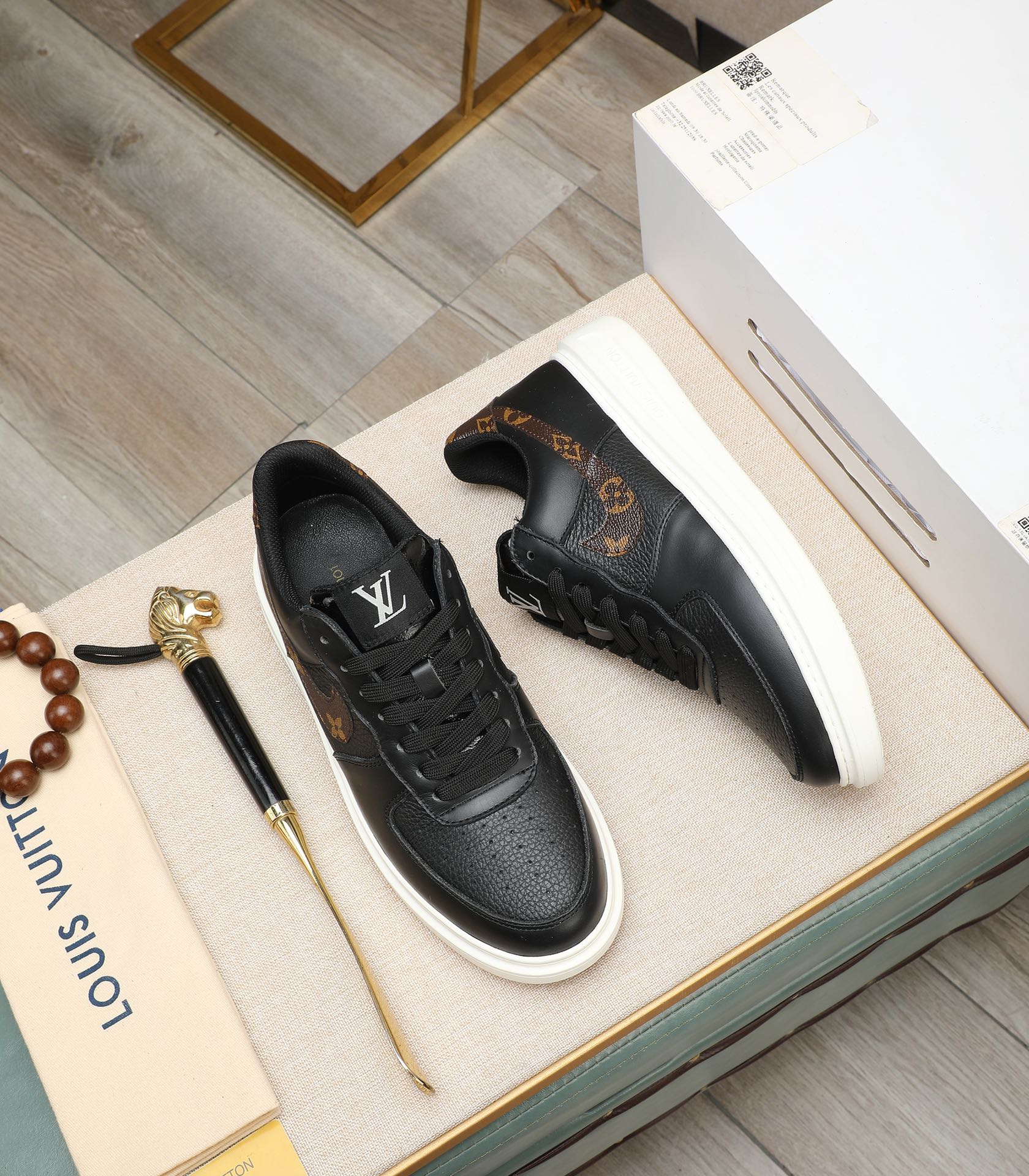 LV AIR FORCE 1 IN PELLE DI VITELLO NERA LUCIDA CON LOGO MONOGRAMMA MARRONE