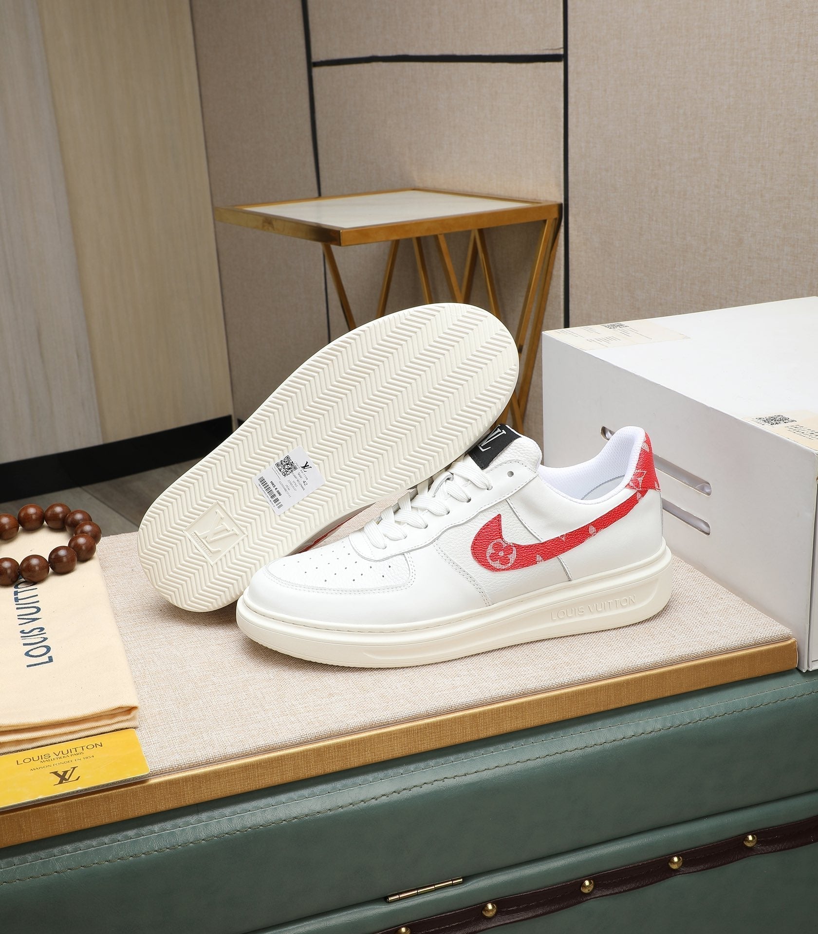 LV AIR FORCE 1 IN PELLE DI VITELLO BIANCA LUCIDA CON LOGO MONOGRAMMA ROSSO