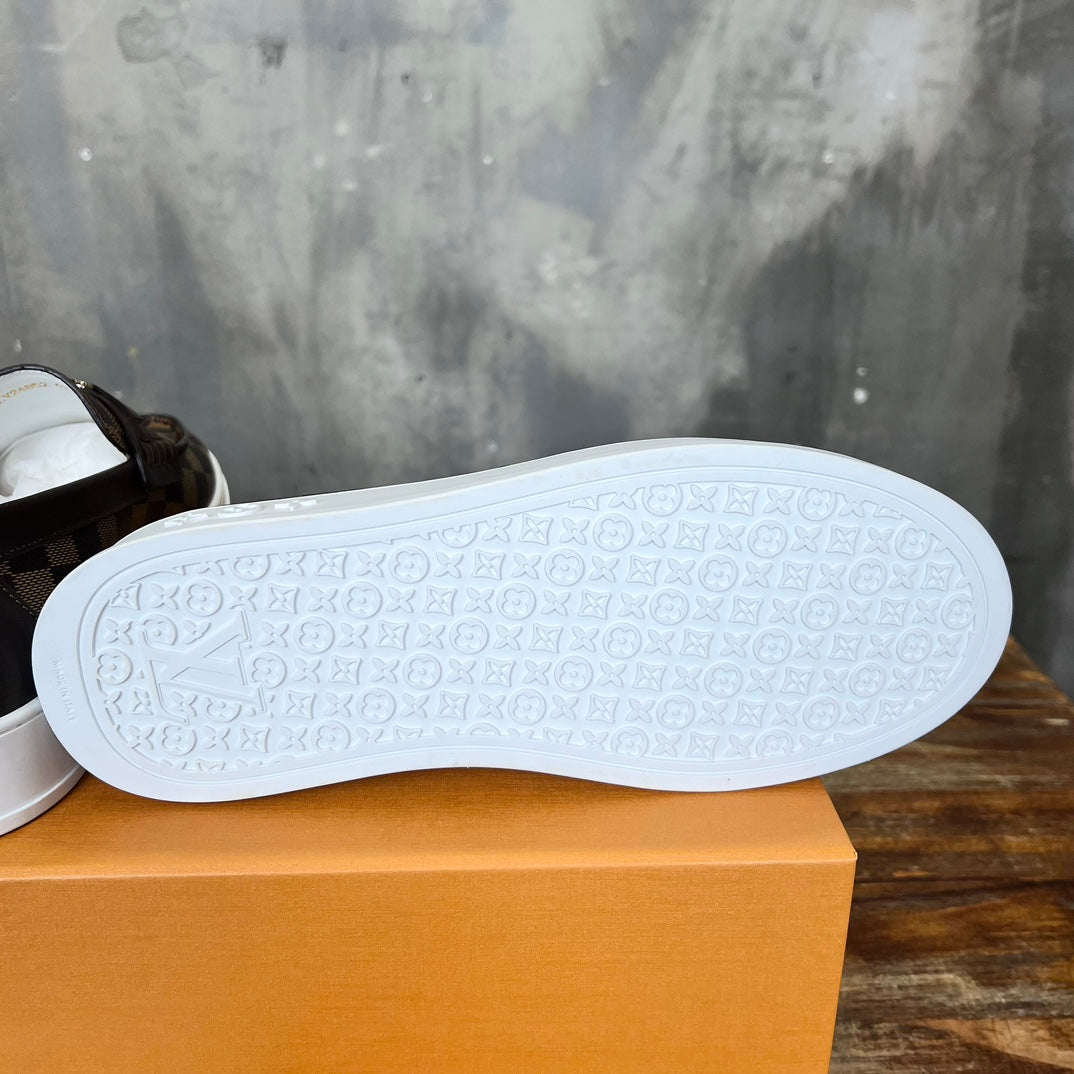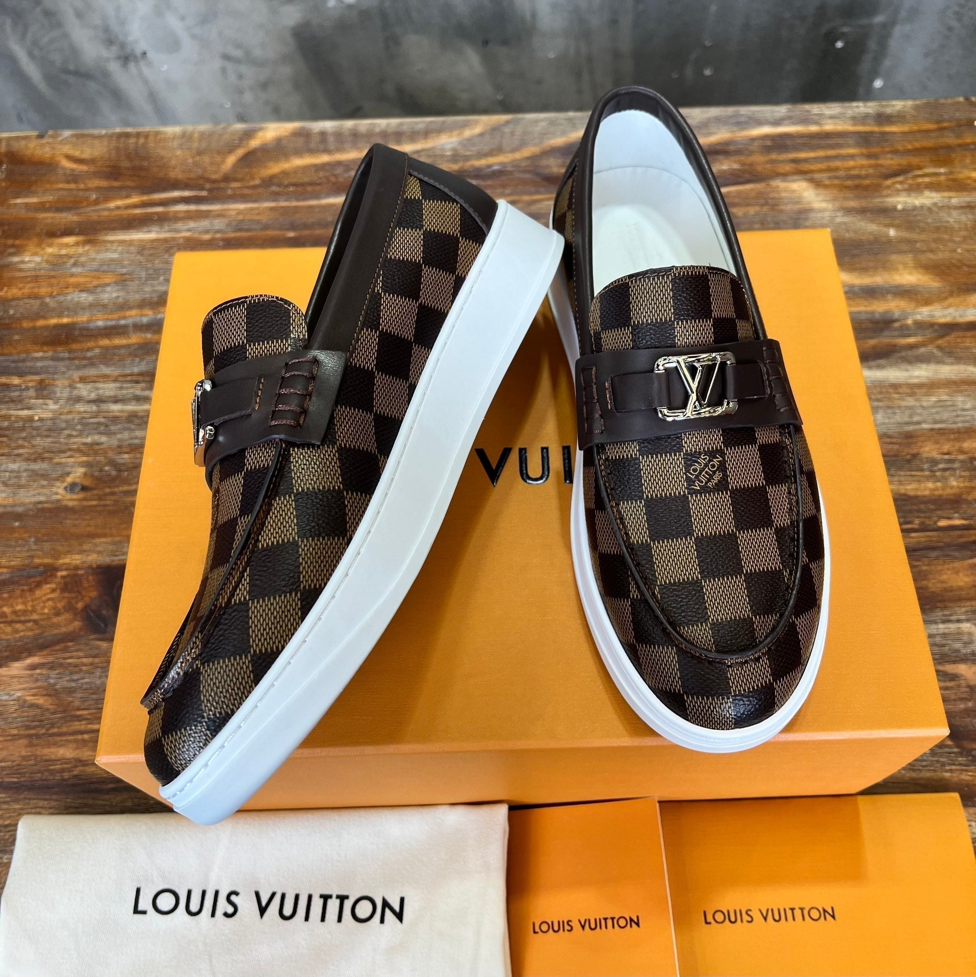 MOCASSINO LV IN TELA DAMIER E PELLE DI VITELLO MARRONE CIOCCOLATO