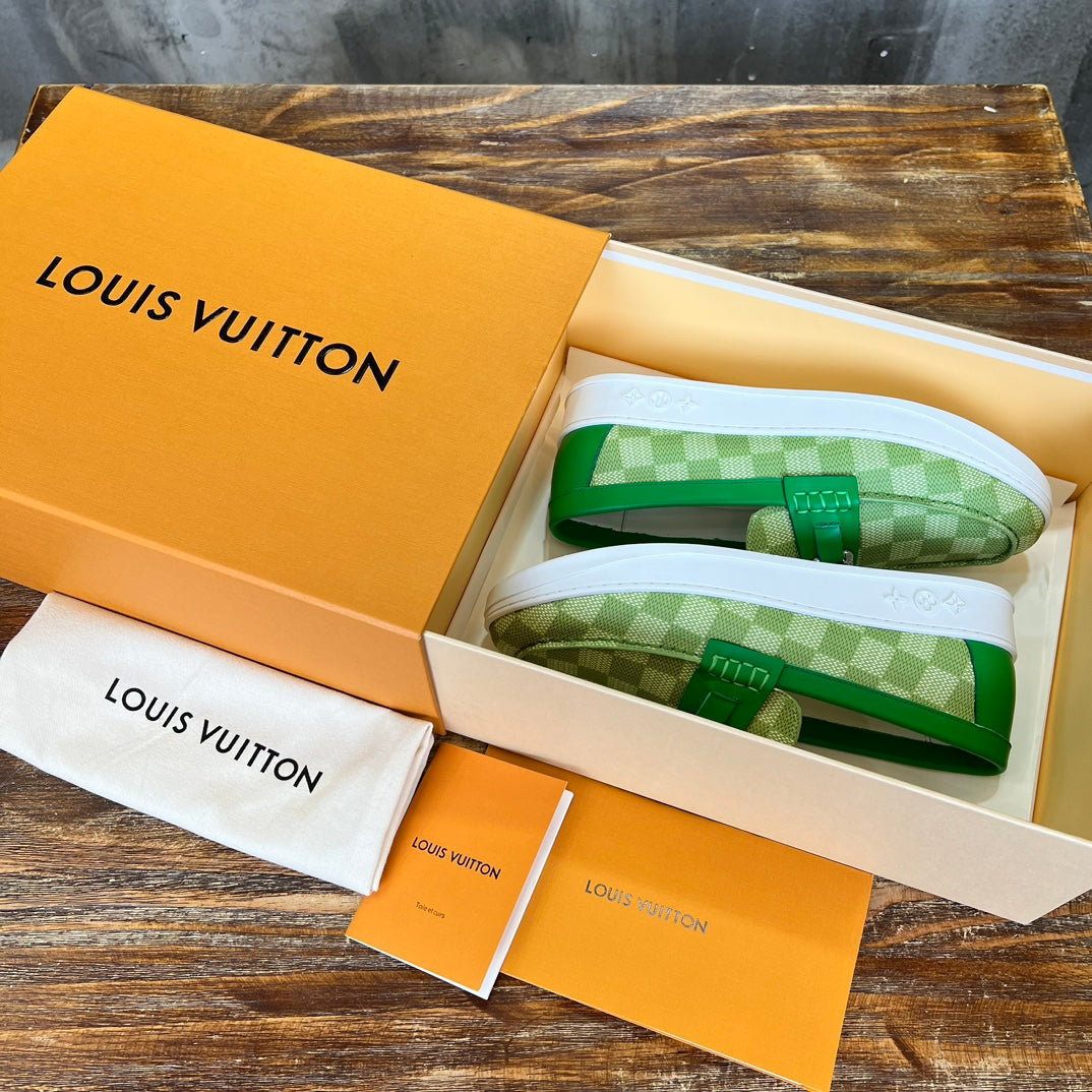MOCASSINO LV COCCODRILLO VERDE TELA DAMIER E PELLE DI VITELLO