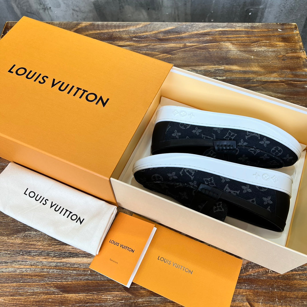 MOCASSINO LV IN TELA MONOGRAMMA NERA E PELLE DI VITELLO