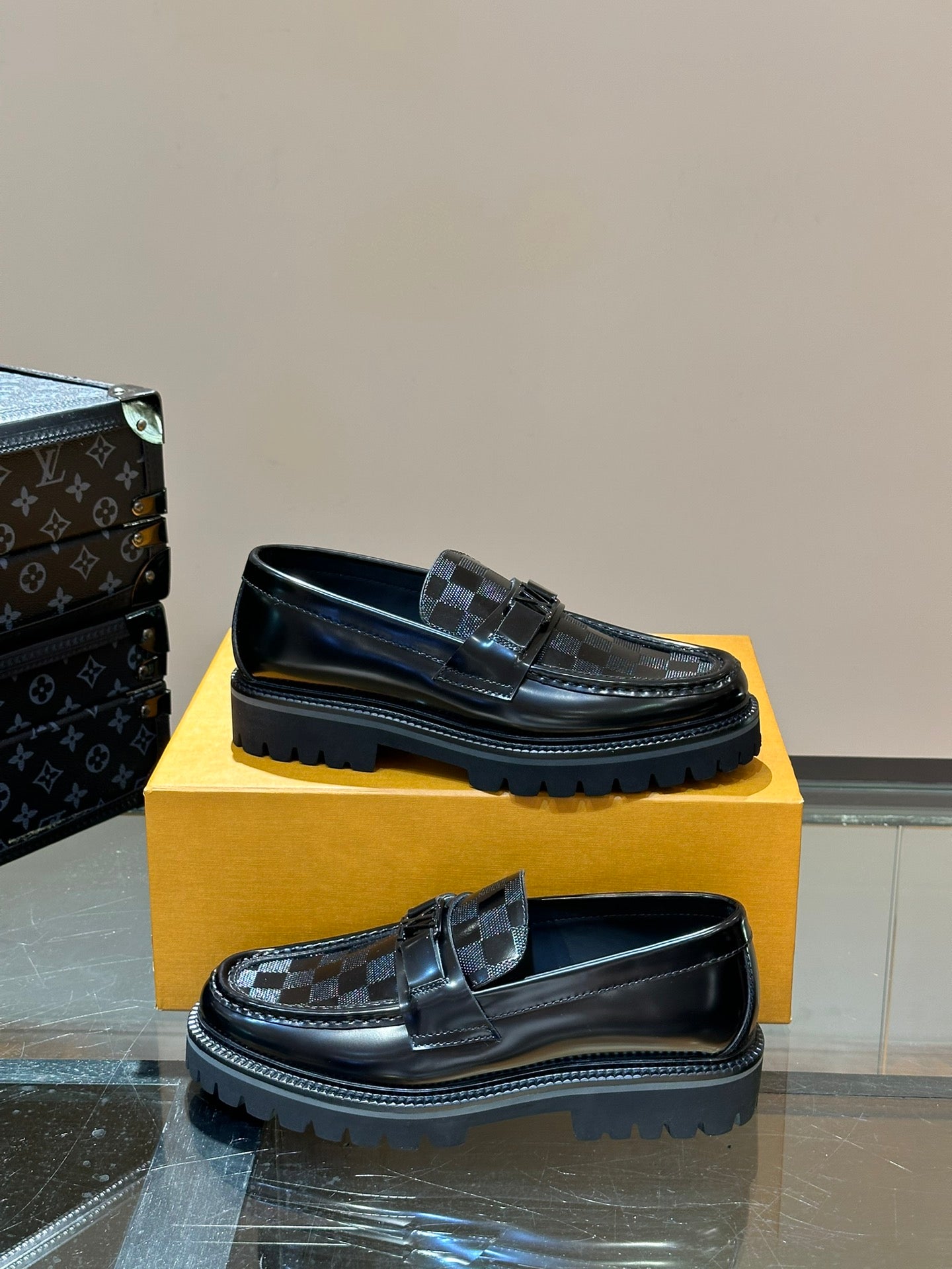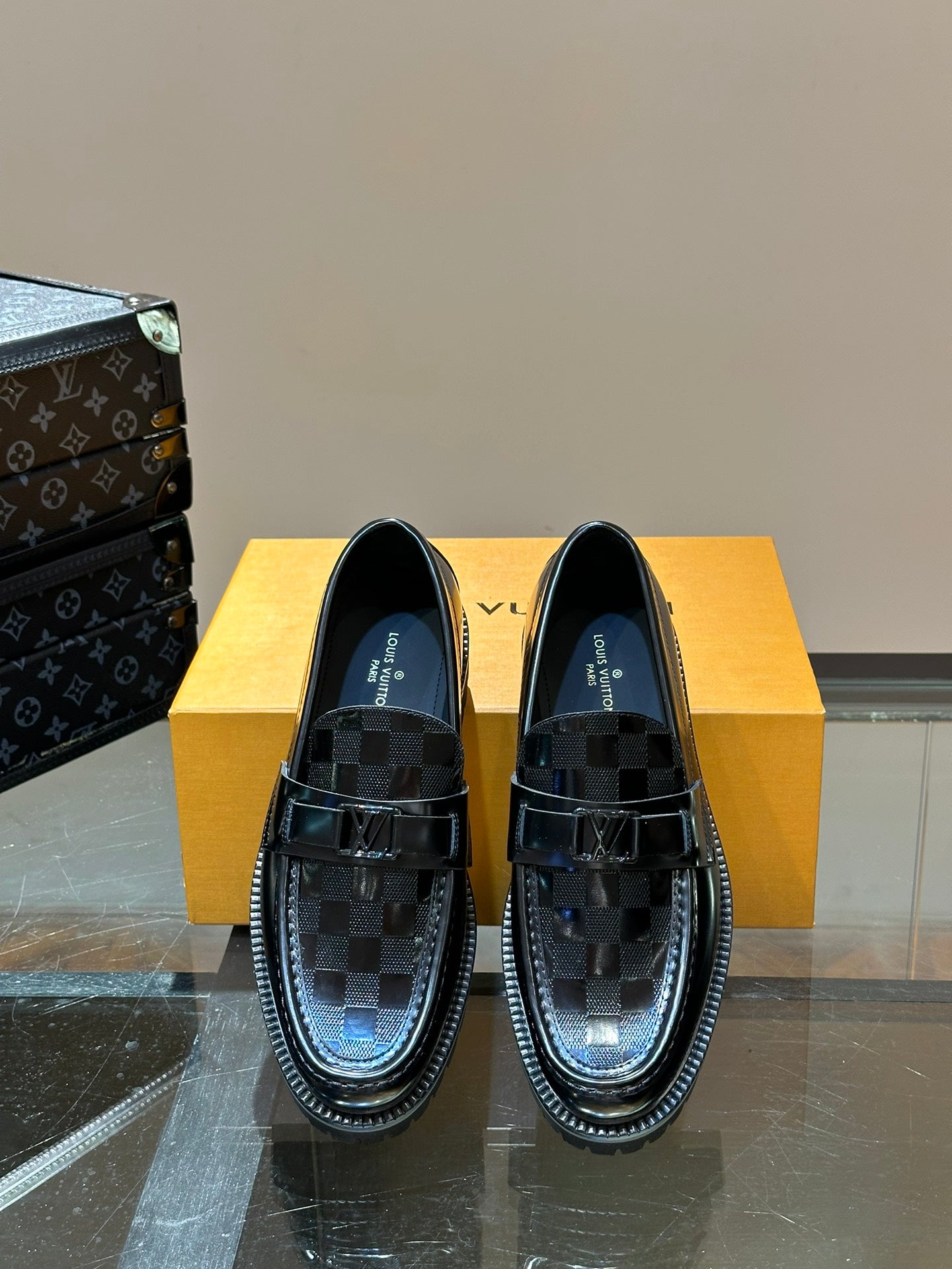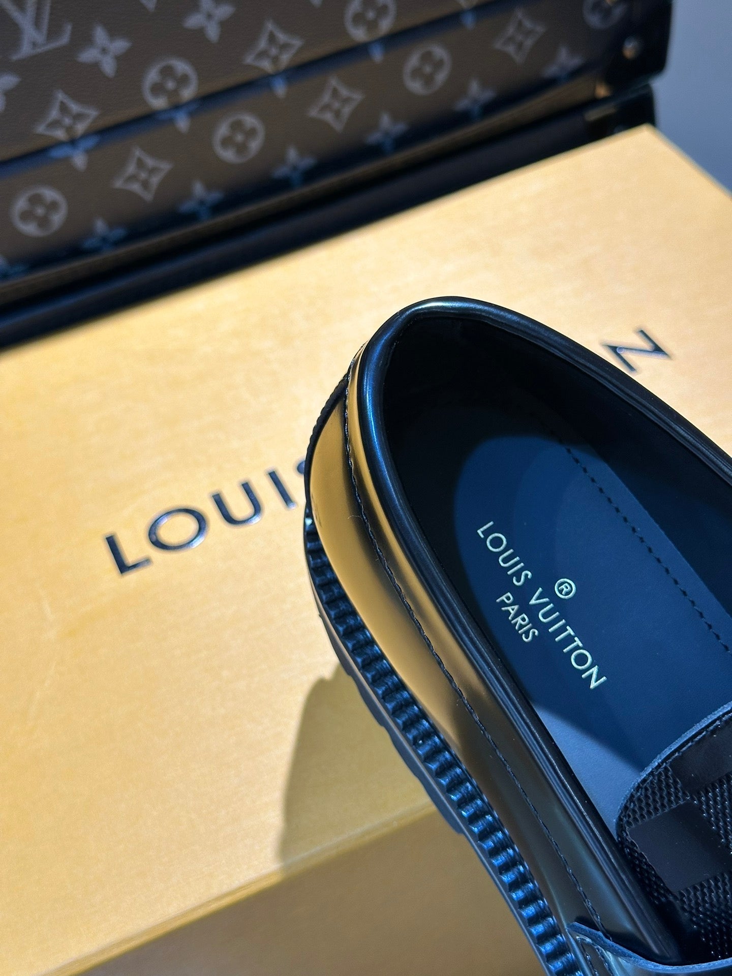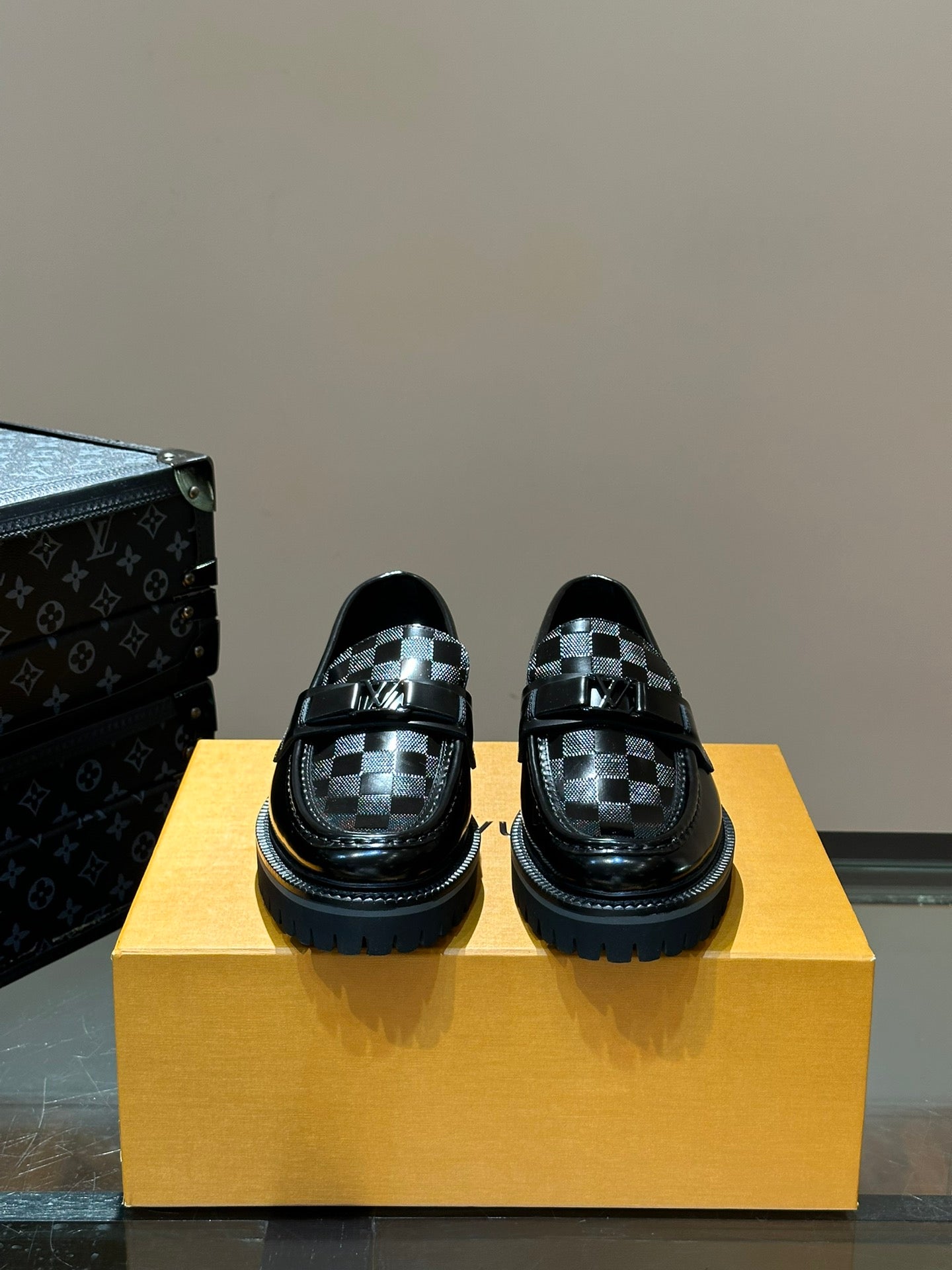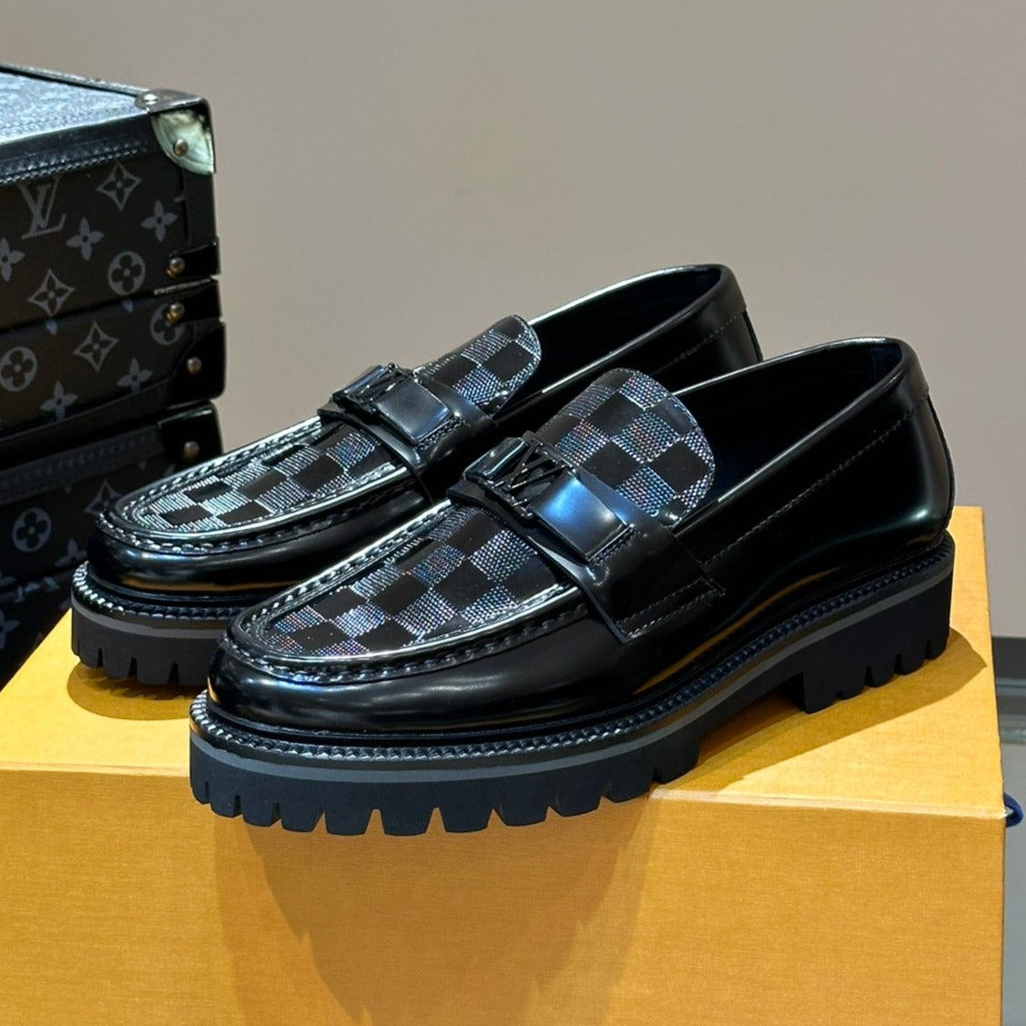 MOCASSINO LV MAJOR IN PELLE DI VITELLO DAMIER NERA