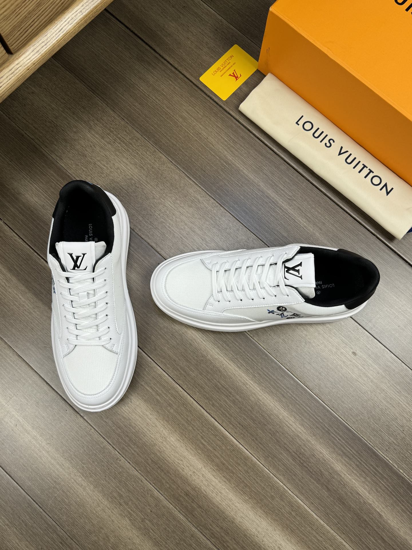 SNEAKER LV TRAINER BIANCA E NERA IN PELLE DI VITELLO E TESSUTO TRASPIRANTE