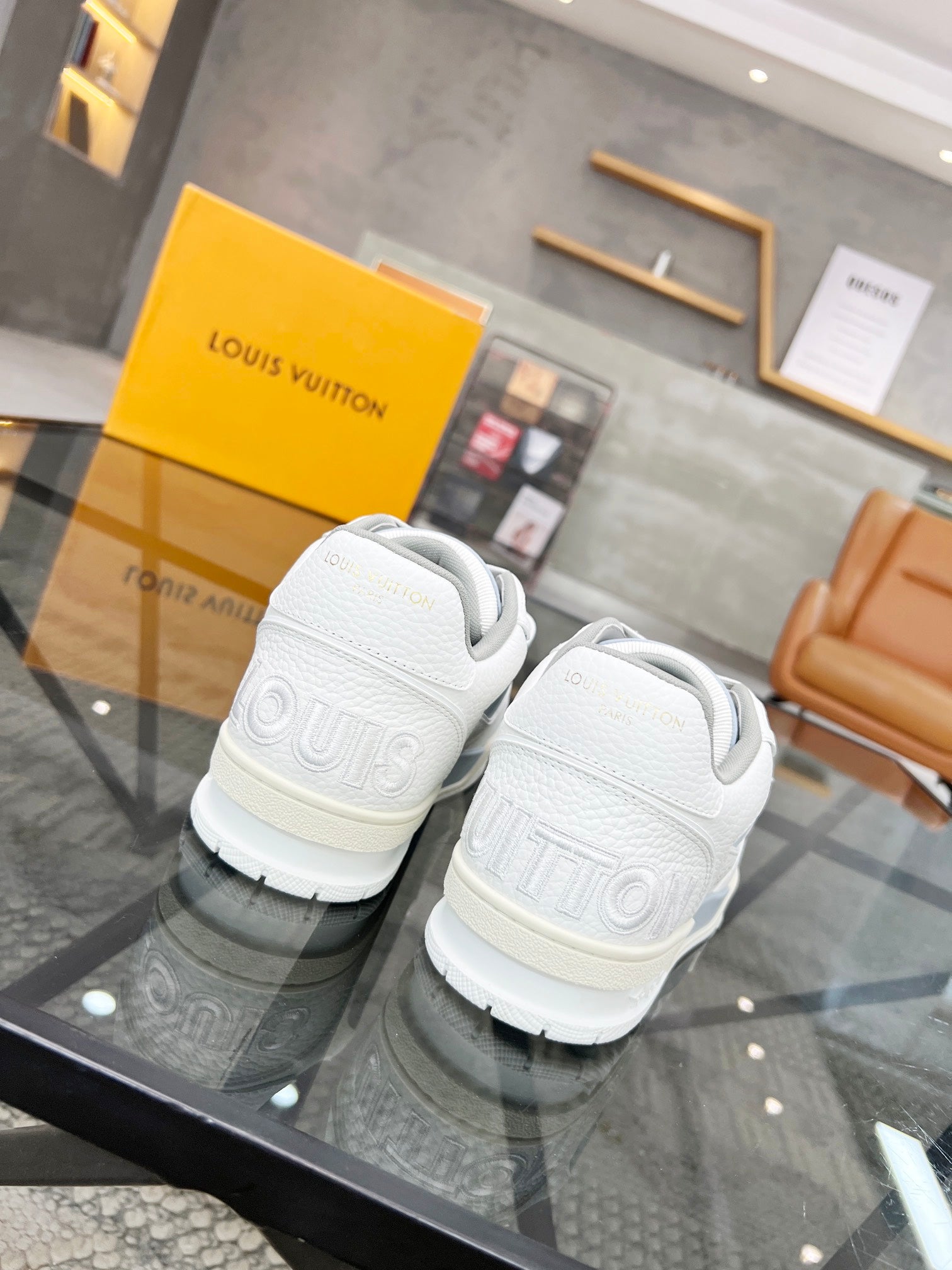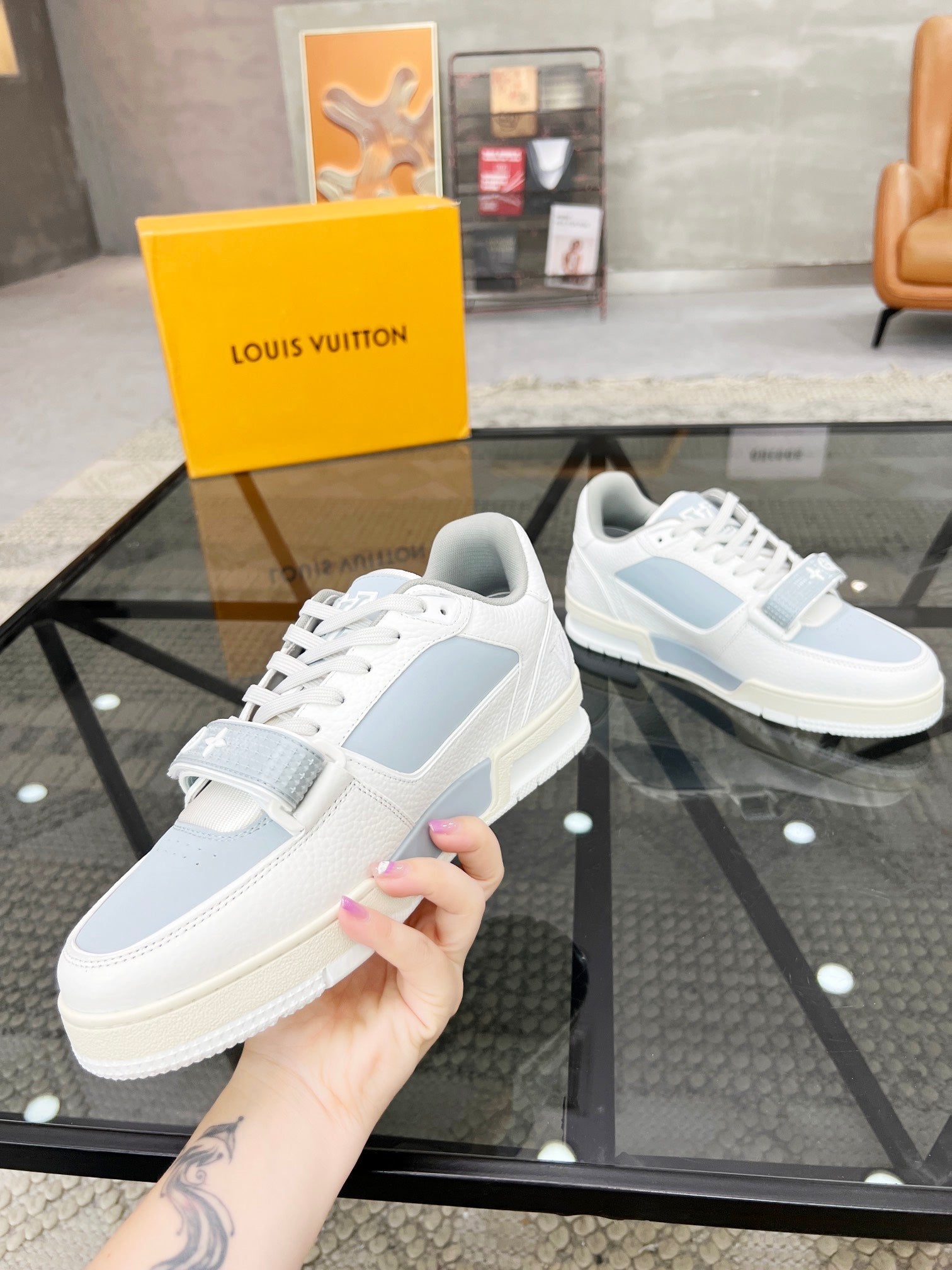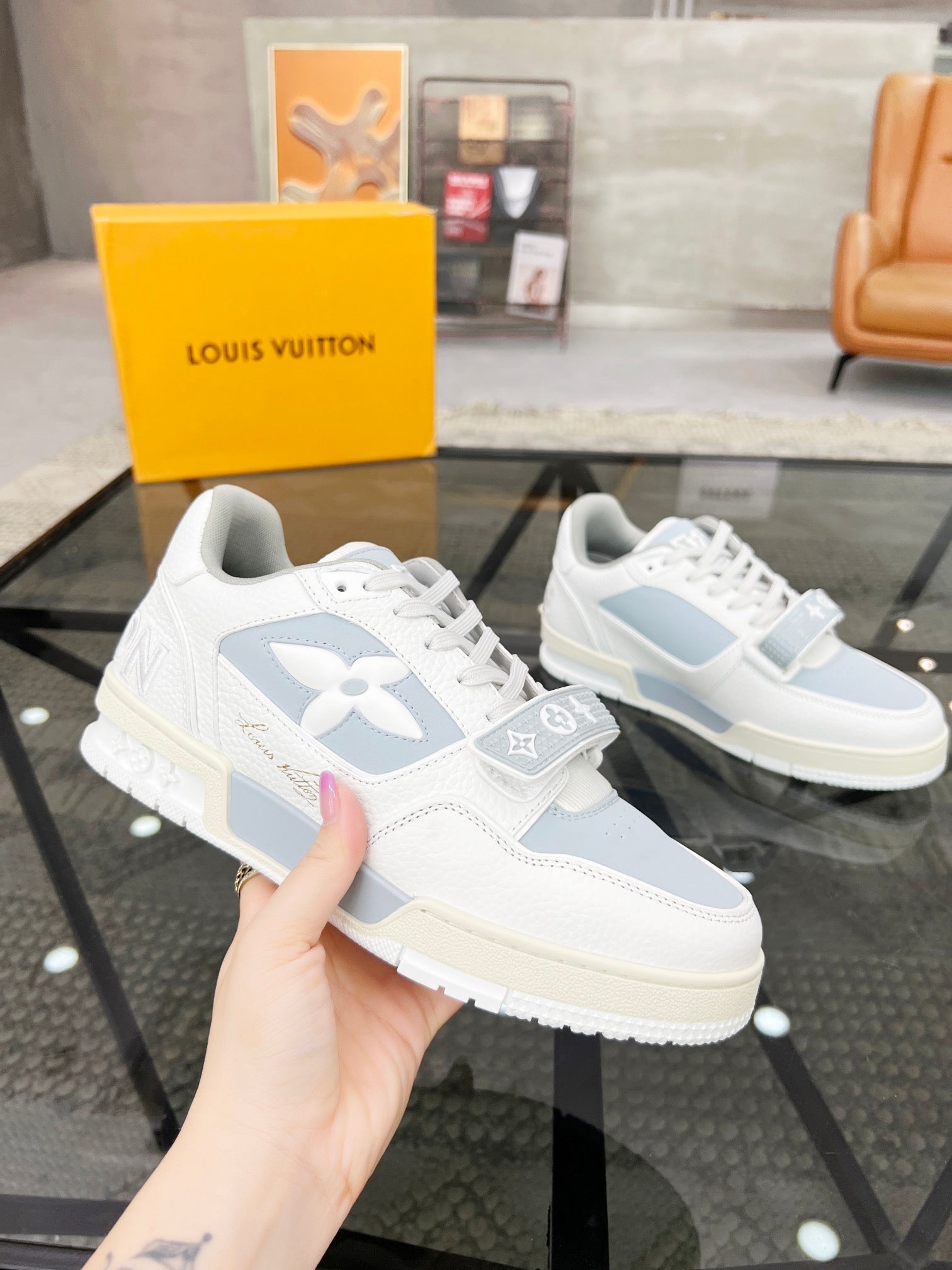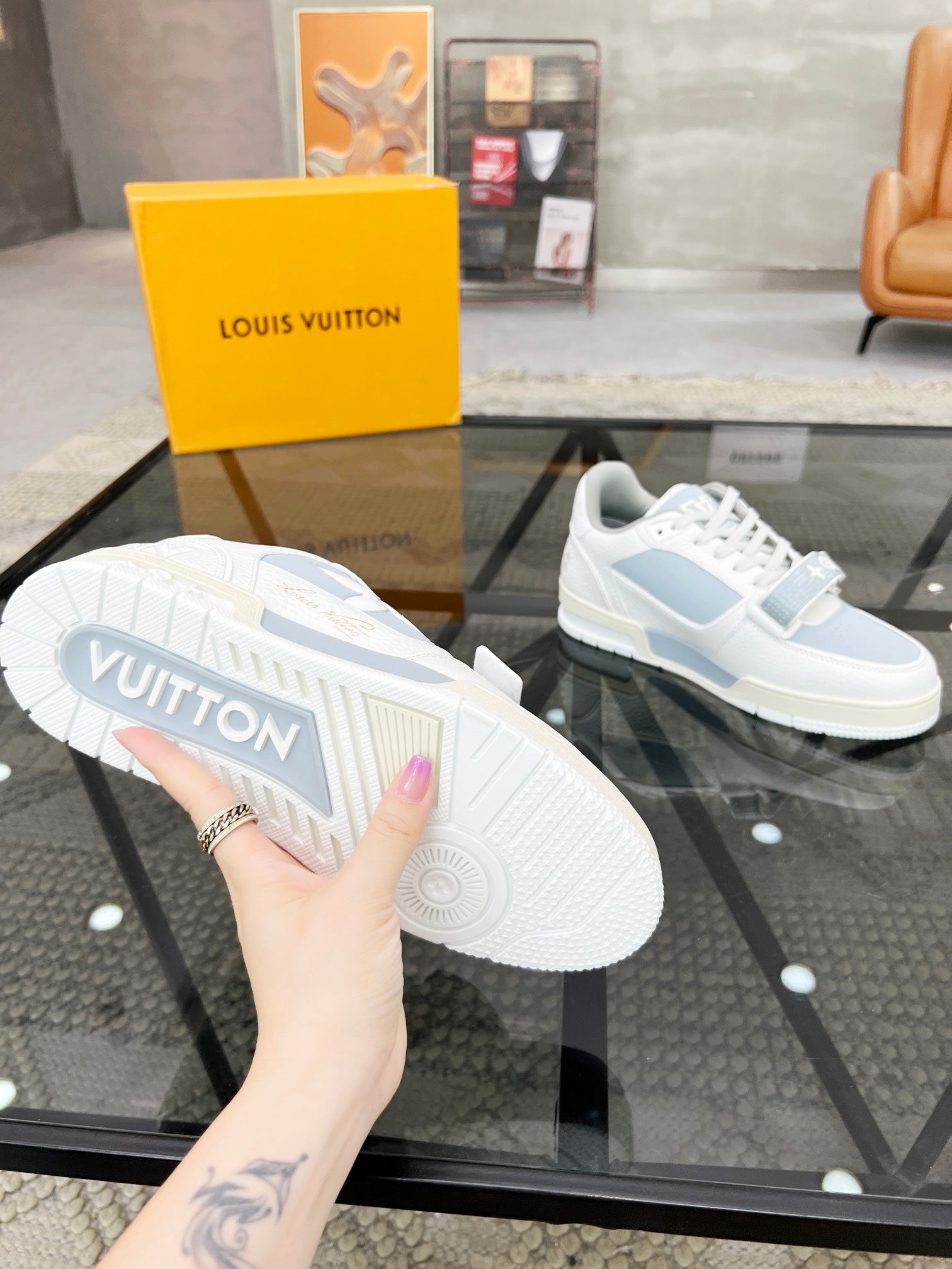 SNEAKER LV TRAINER IN PELLE DI VITELLO BIANCA E CAMOSCIO AZZURRO