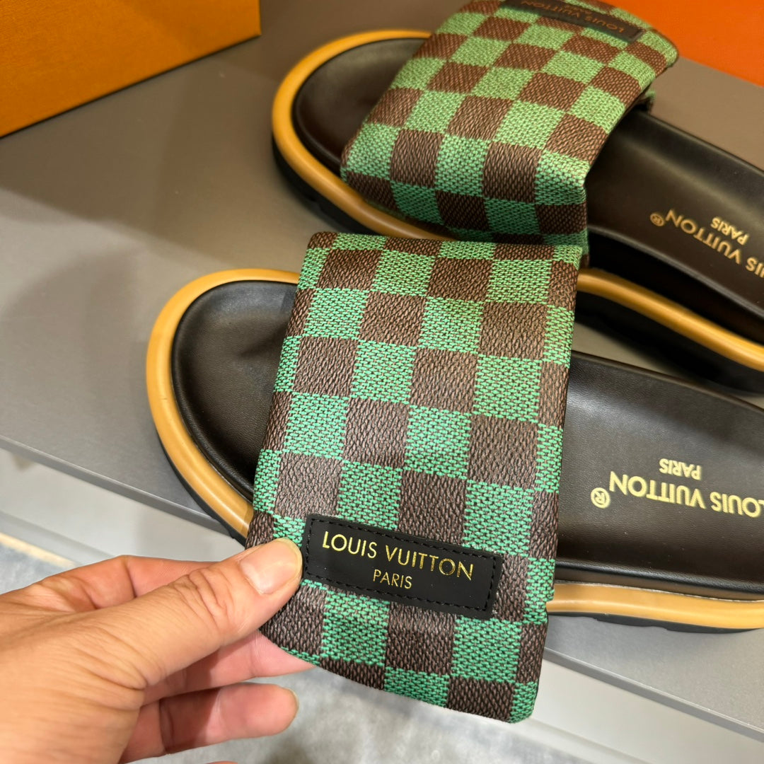 LV PANTOFOLE CON VELCRO VERDE MIX MARRONE DAMIER MONOGRAM PELLE DI VITELLO