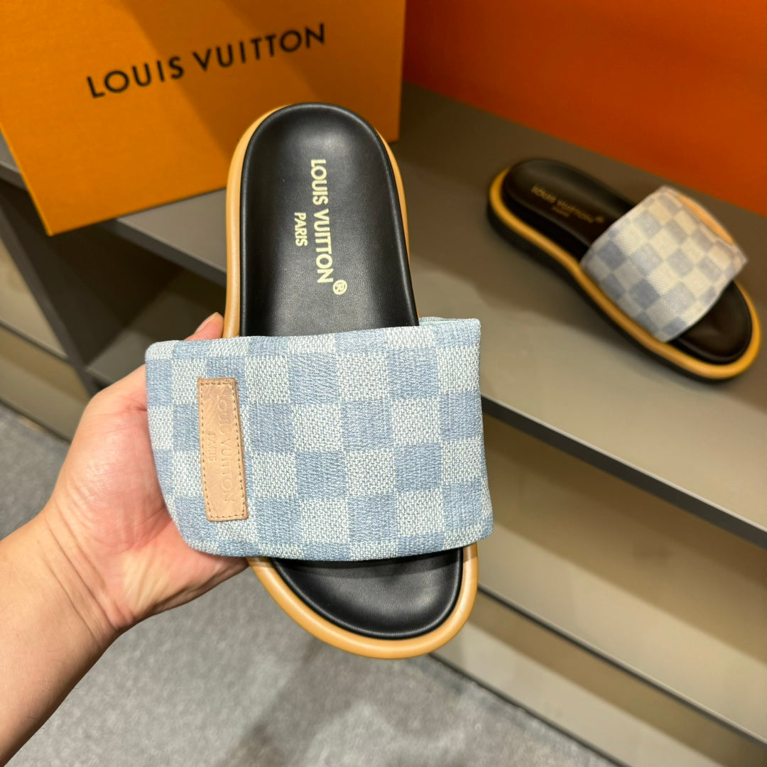 LV PANTOFOLE CON VELCRO AZZURRO DAMIER MONOGRAM JACQUARD