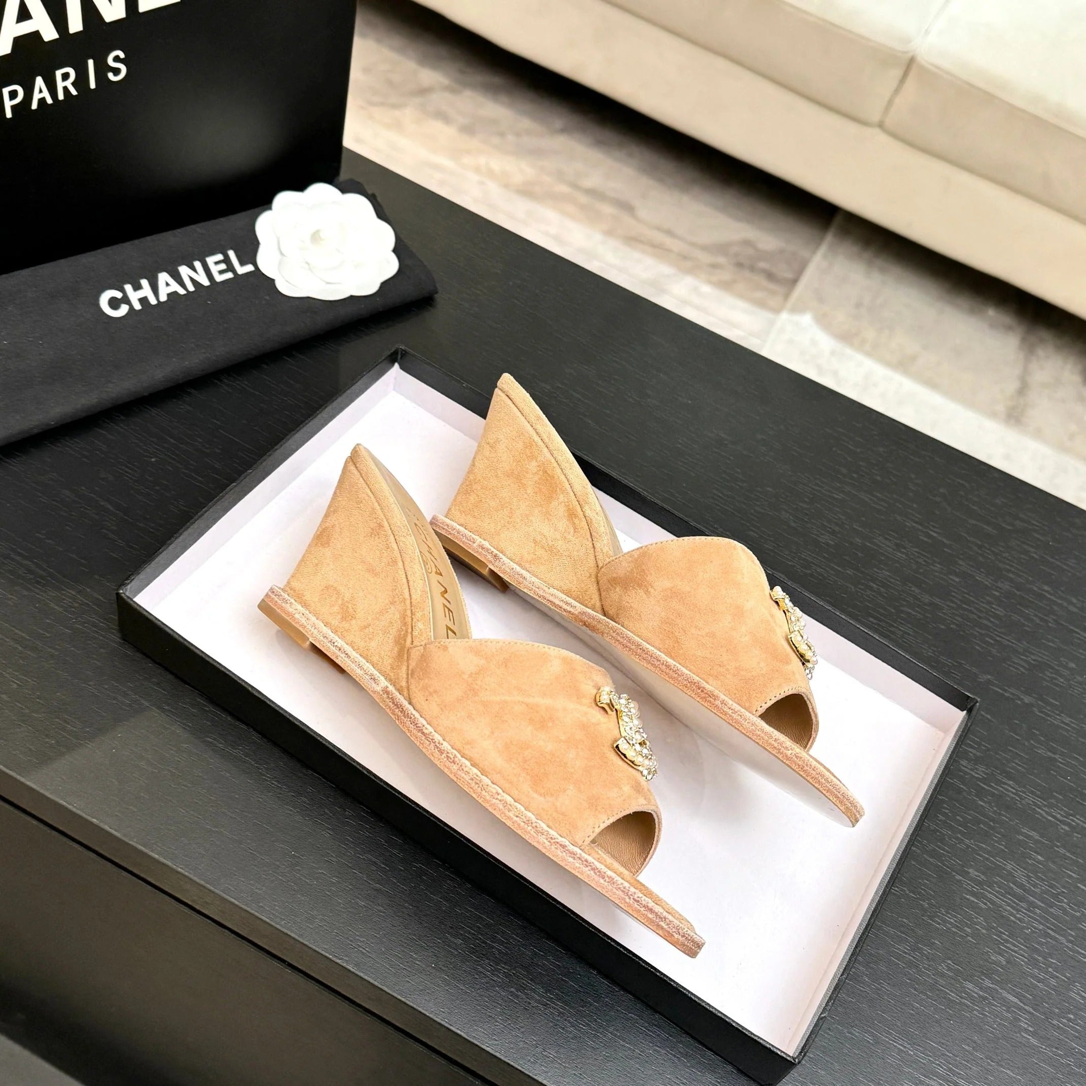 CC 2026 Wedge Sandals 65 Beige Suede 667767
