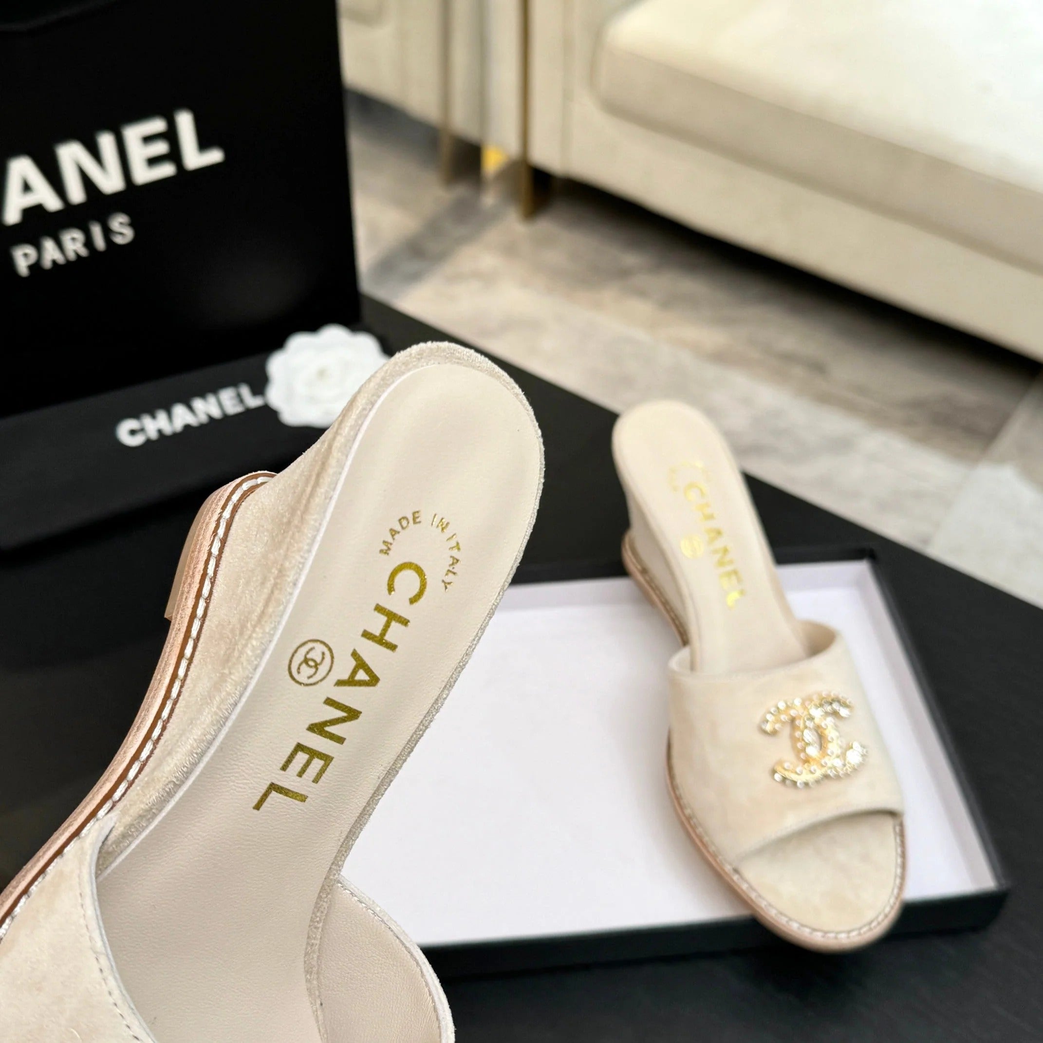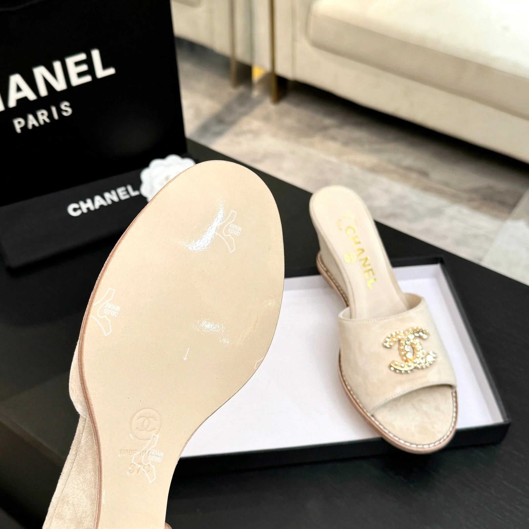 CC 2026 Wedge Sandals 65 Light Beige Suede 667773