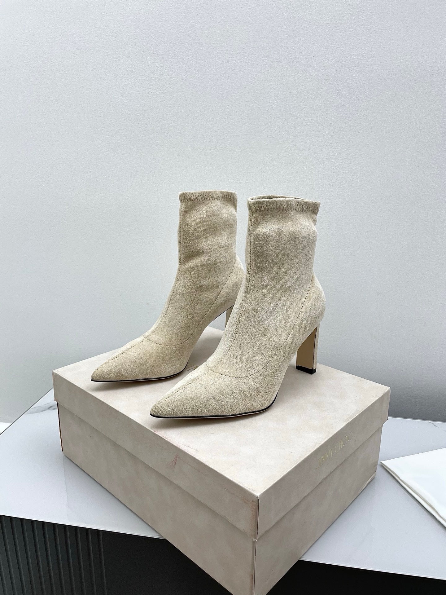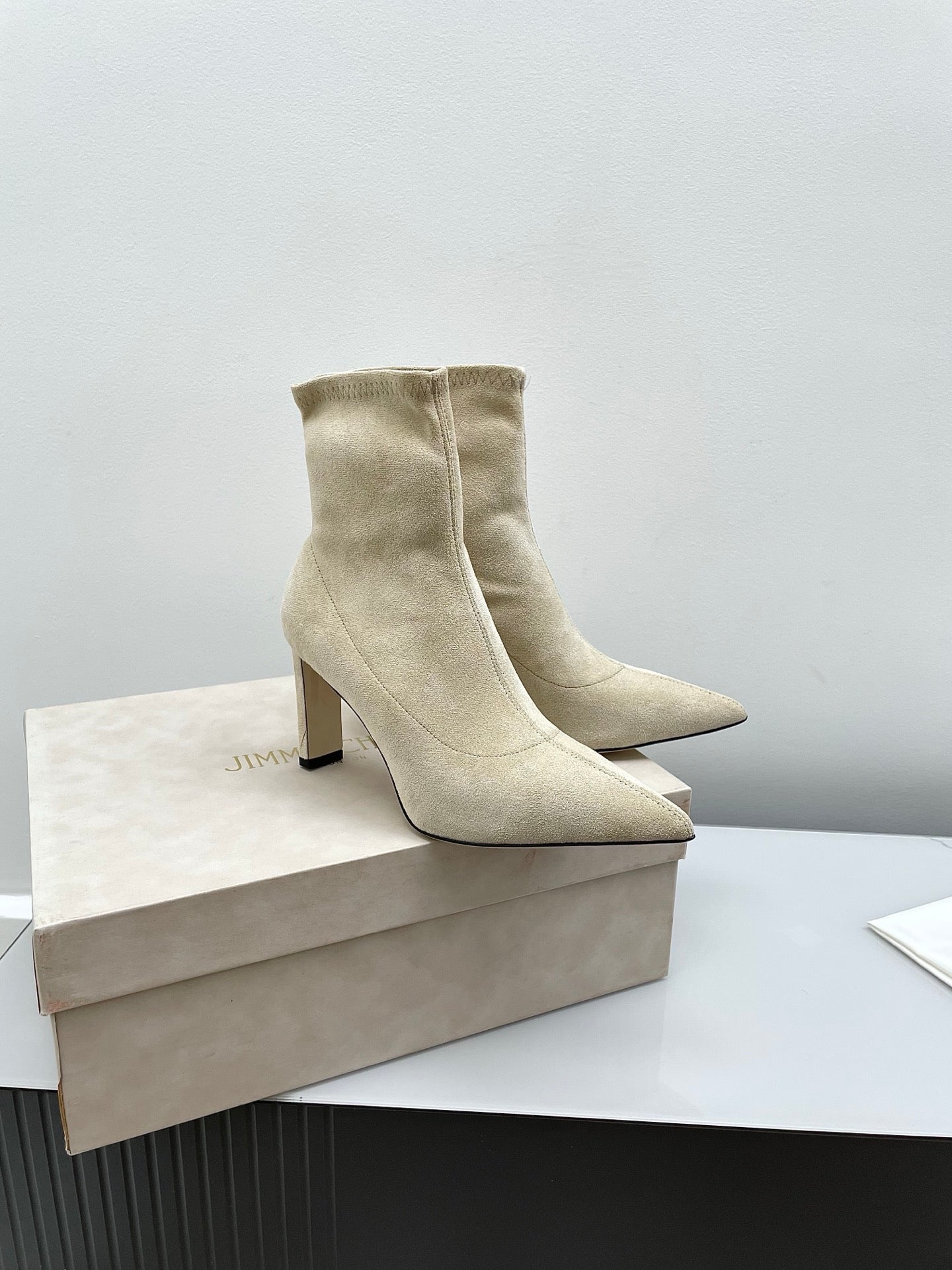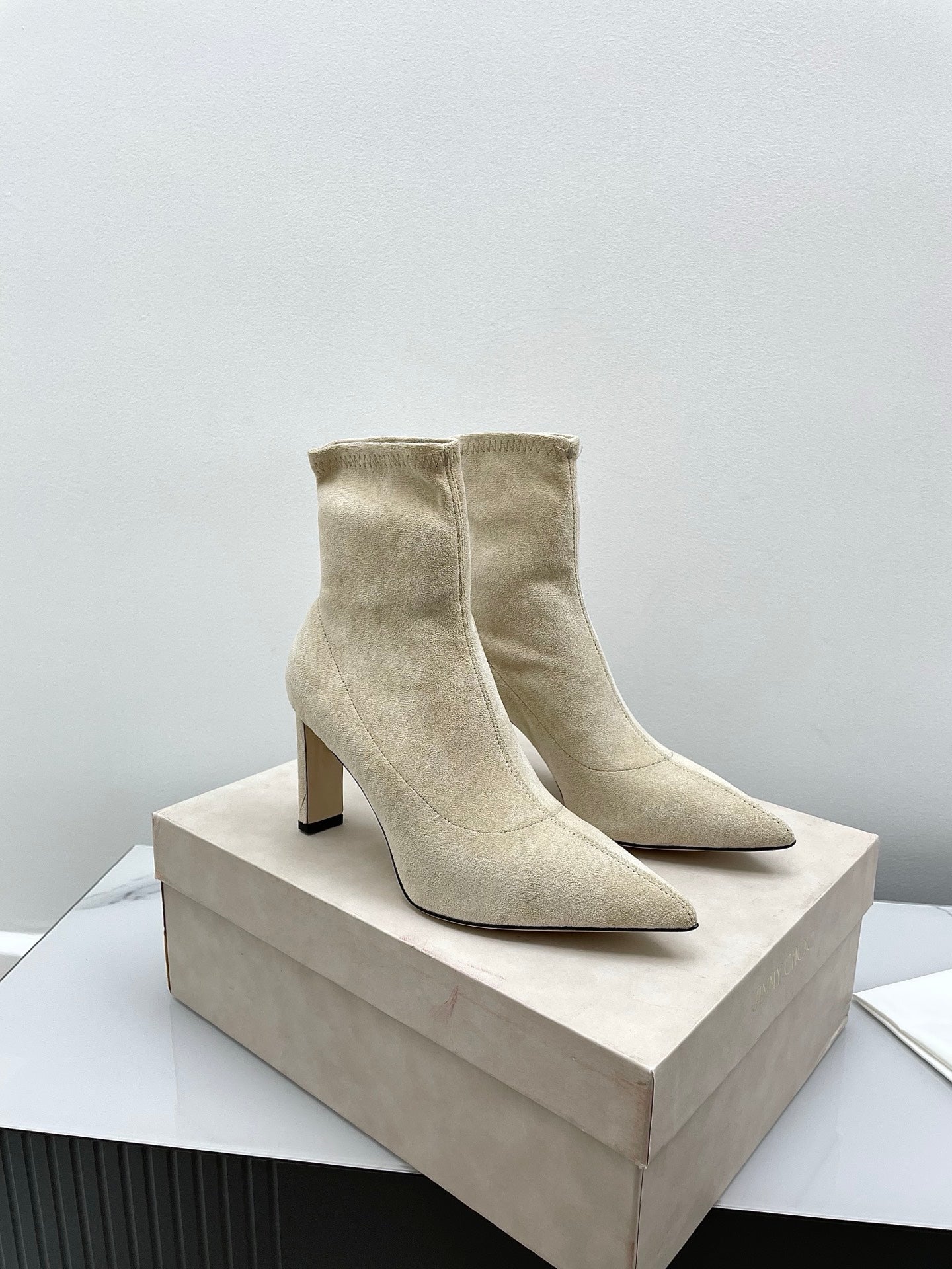 Jimmy Short Boots 85mm Ivory Suede 511613