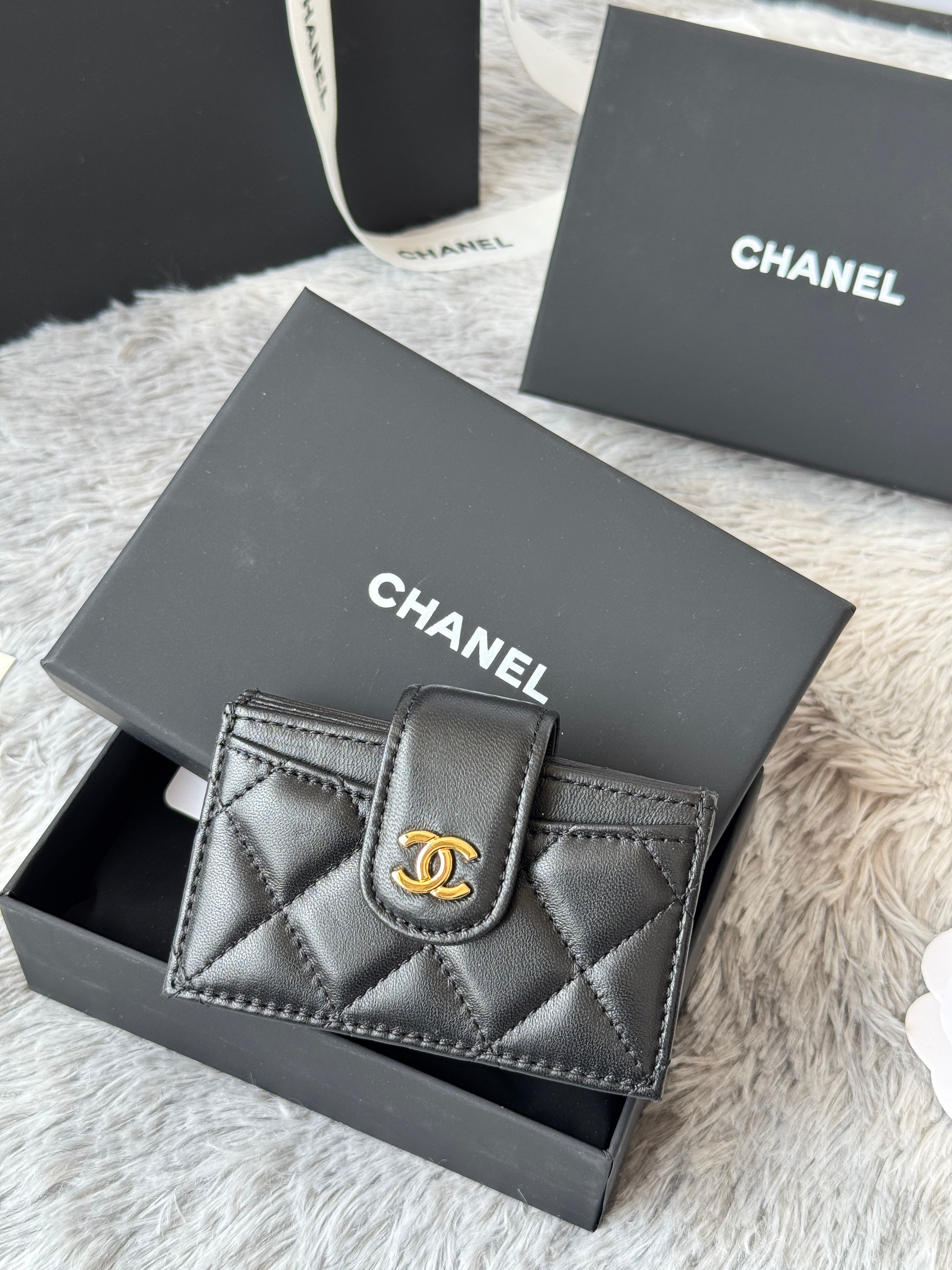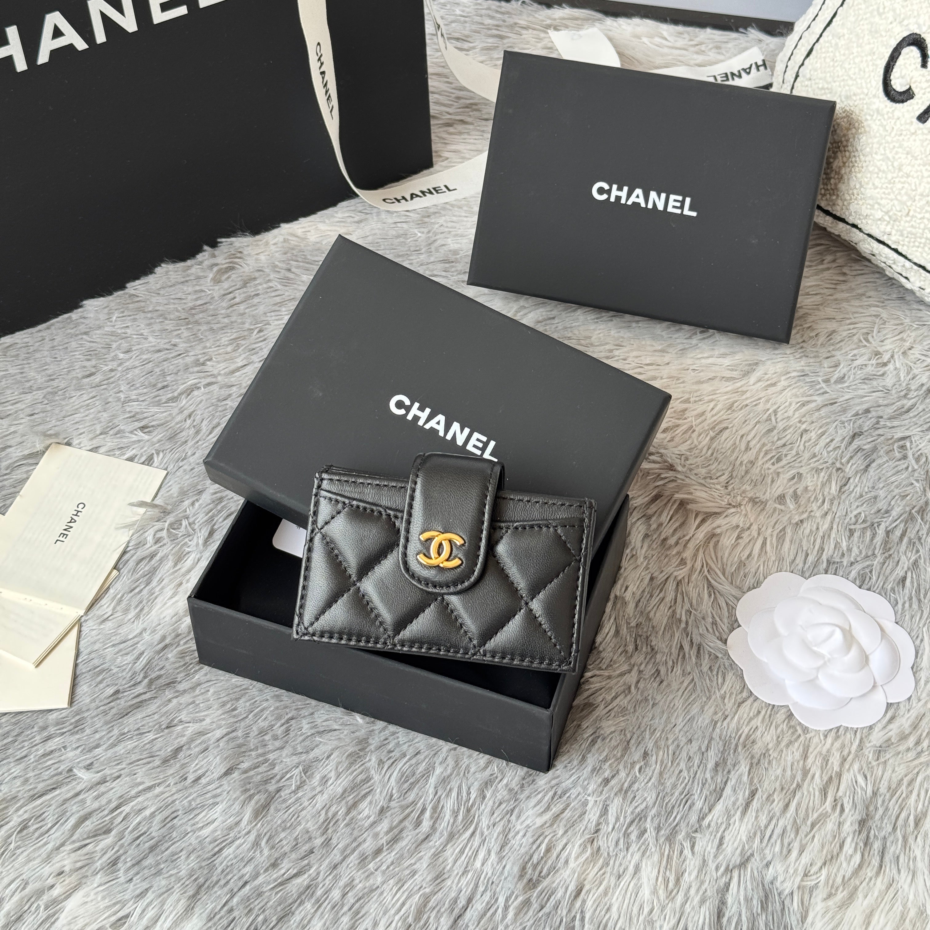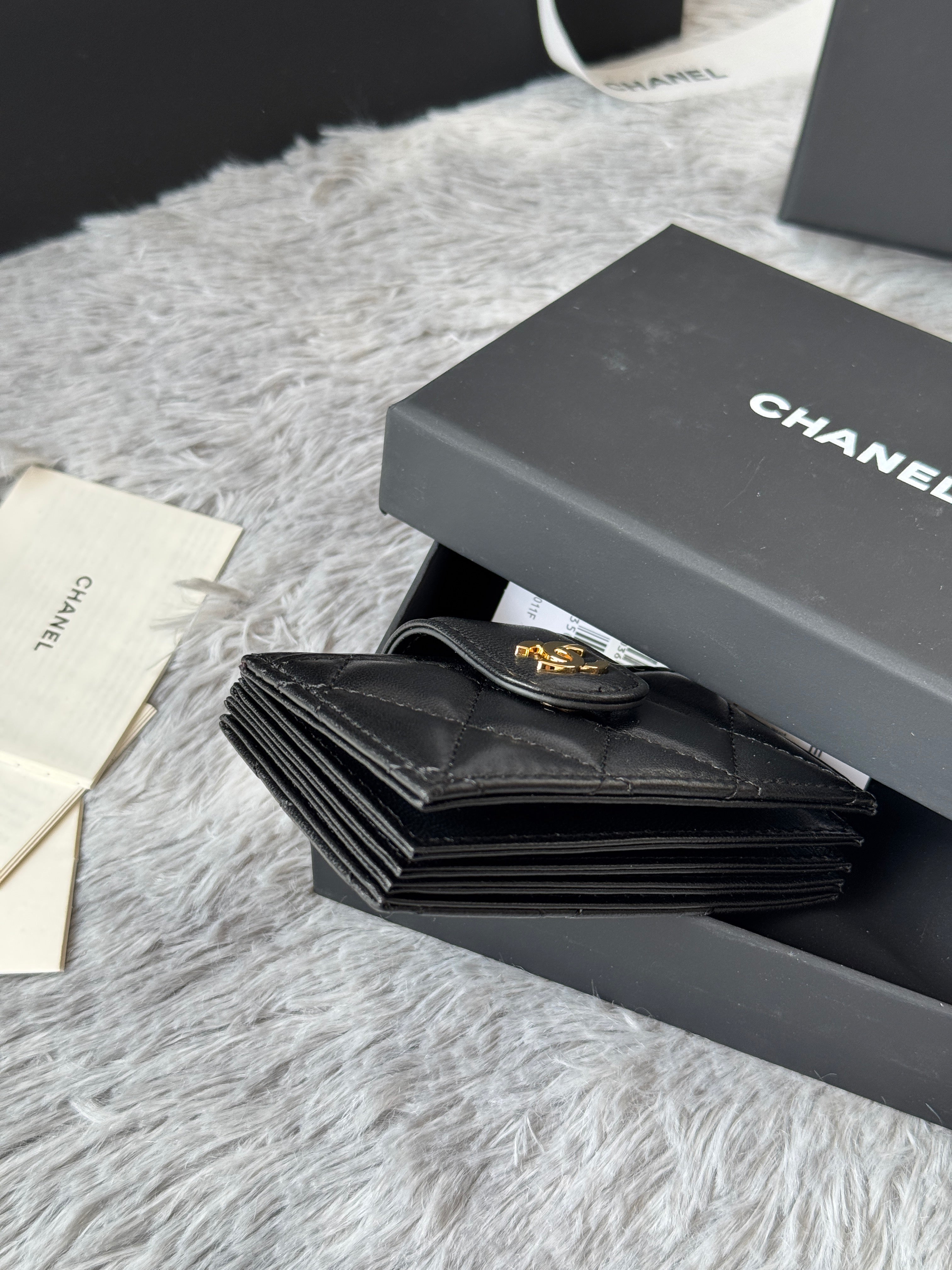 Porta carte a fisarmonica CC in metallo color oro nero, pelle di agnello 242644