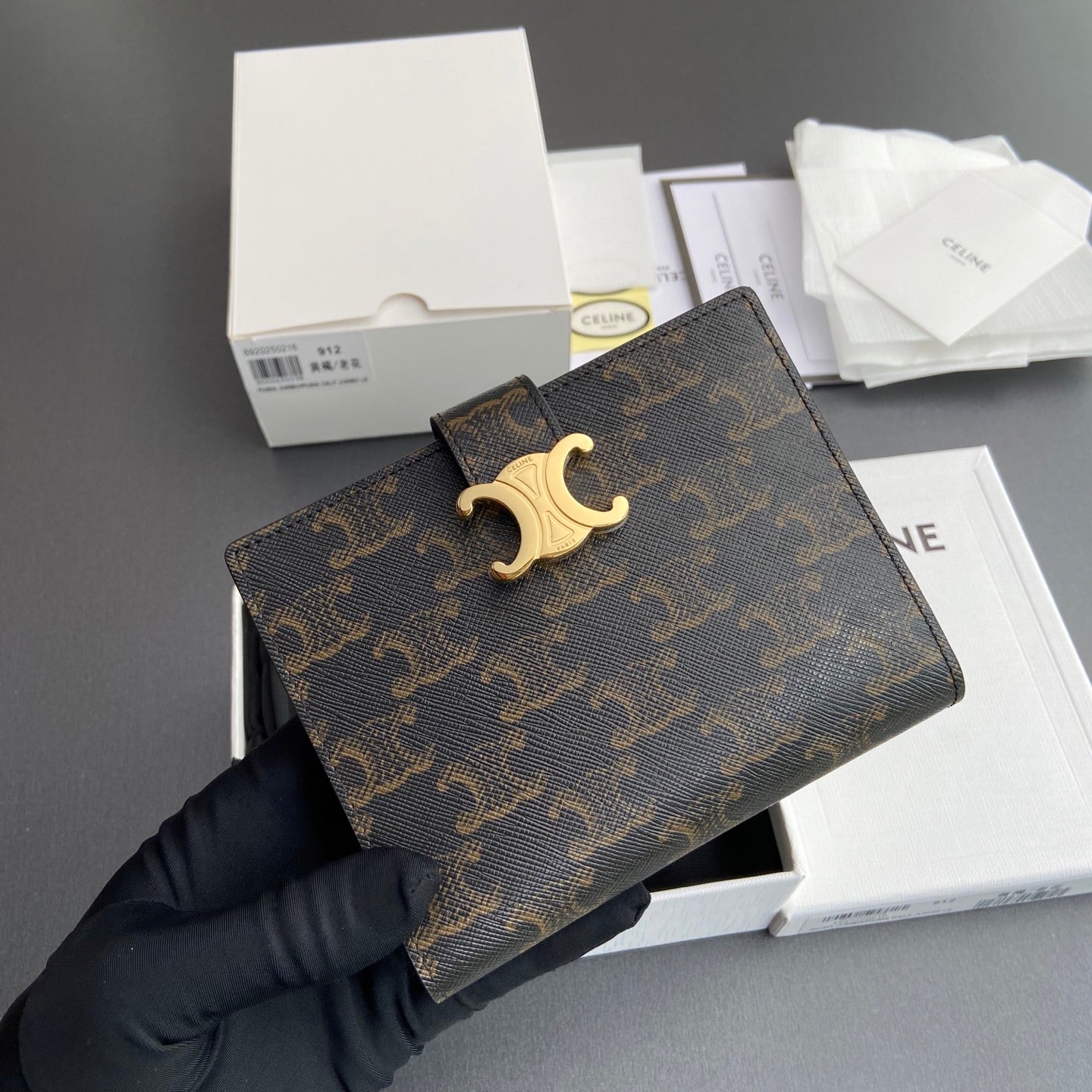 TRIOMPHE Portafoglio medio Victoire Pelle di vacchetta marrone chiaro e tela GHW