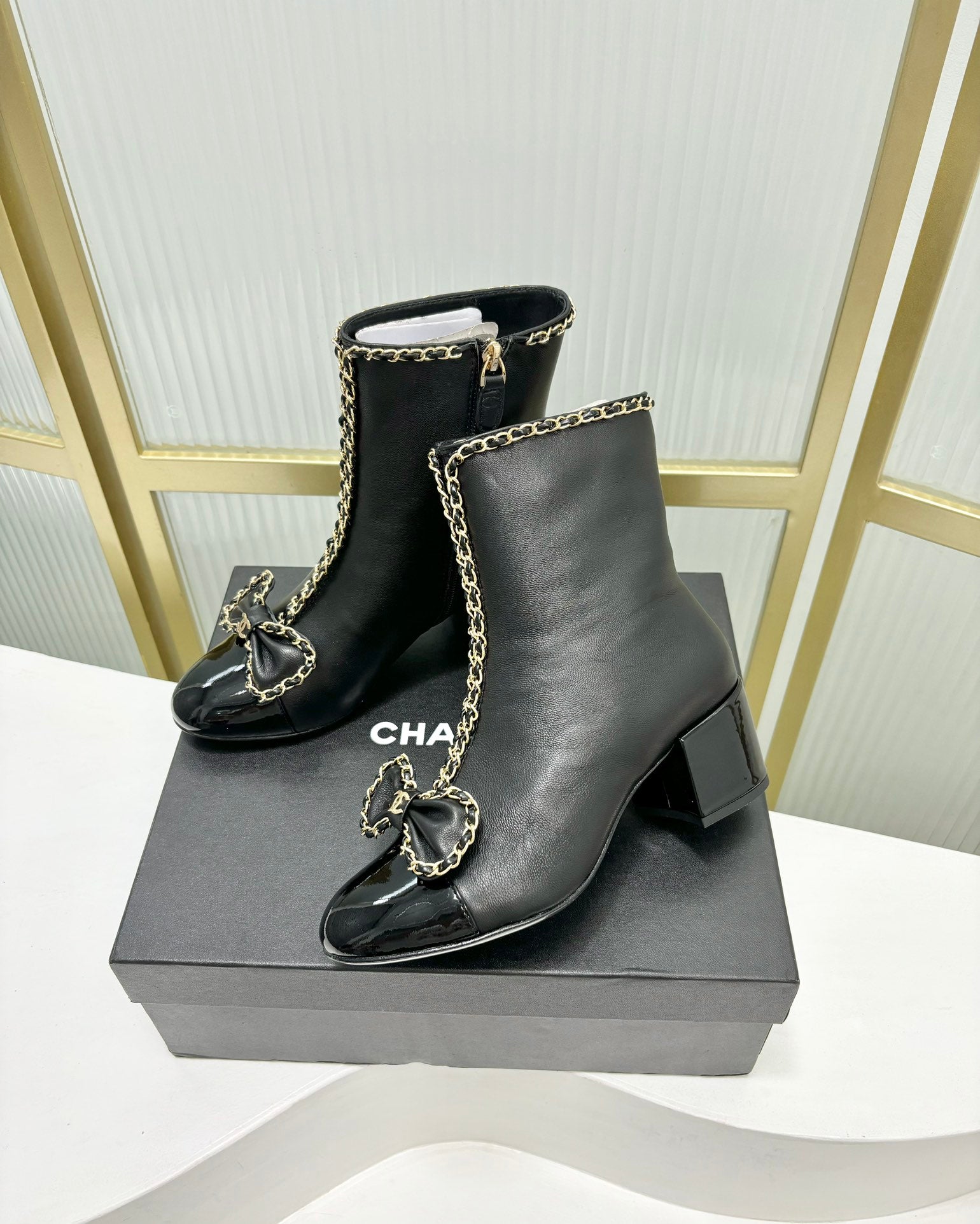Stivaletto CC 65 in pelle di vitello verniciata nera con cinturino in pelle di vitello