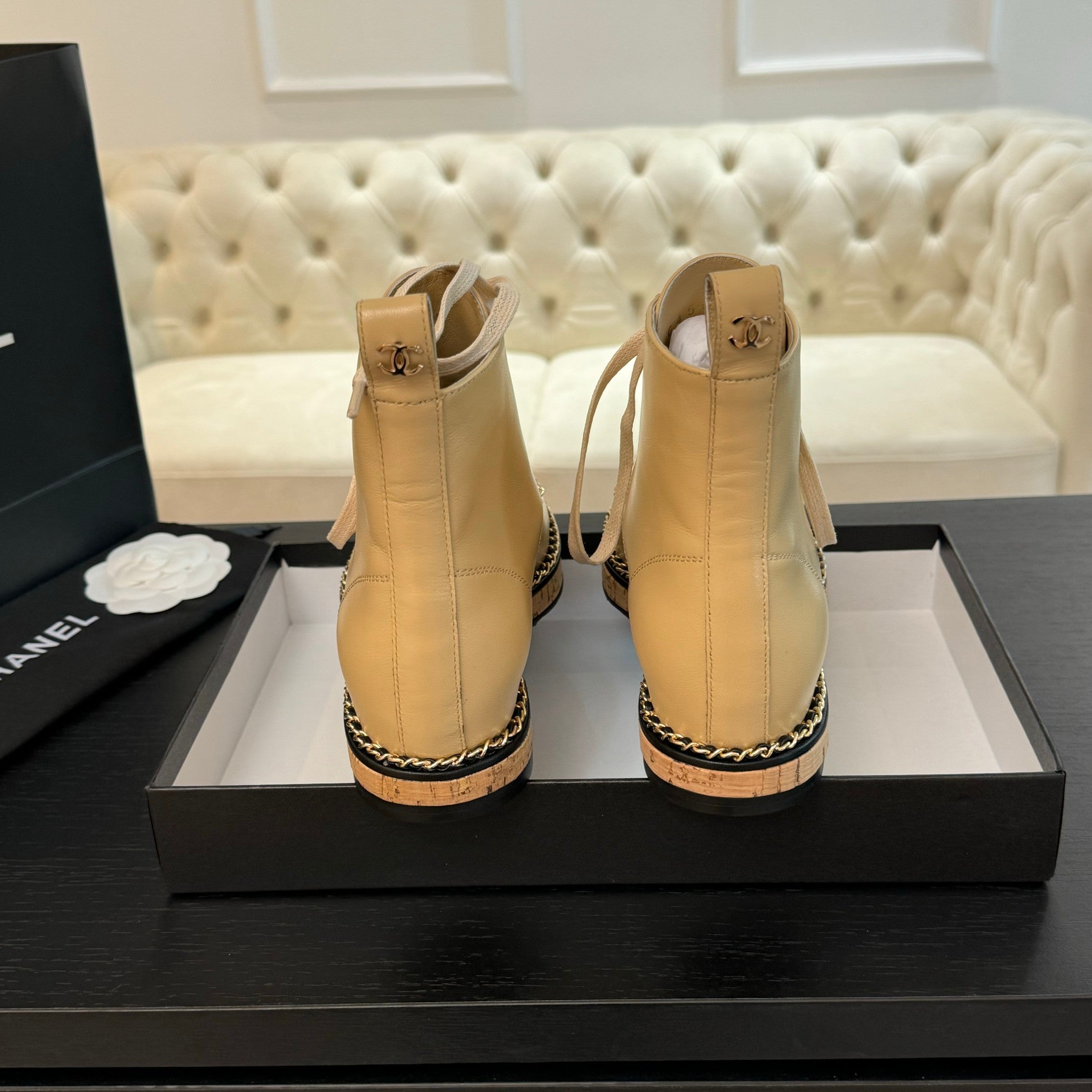 Stivaletti CC Beige con Catena in Pelle di Vitello