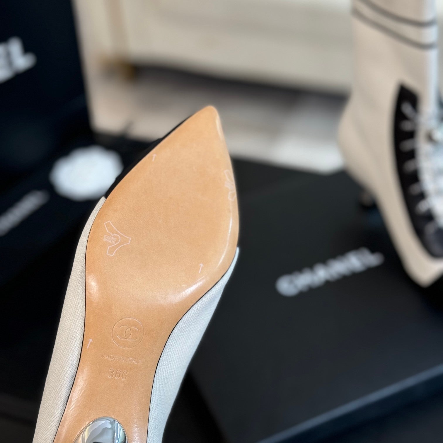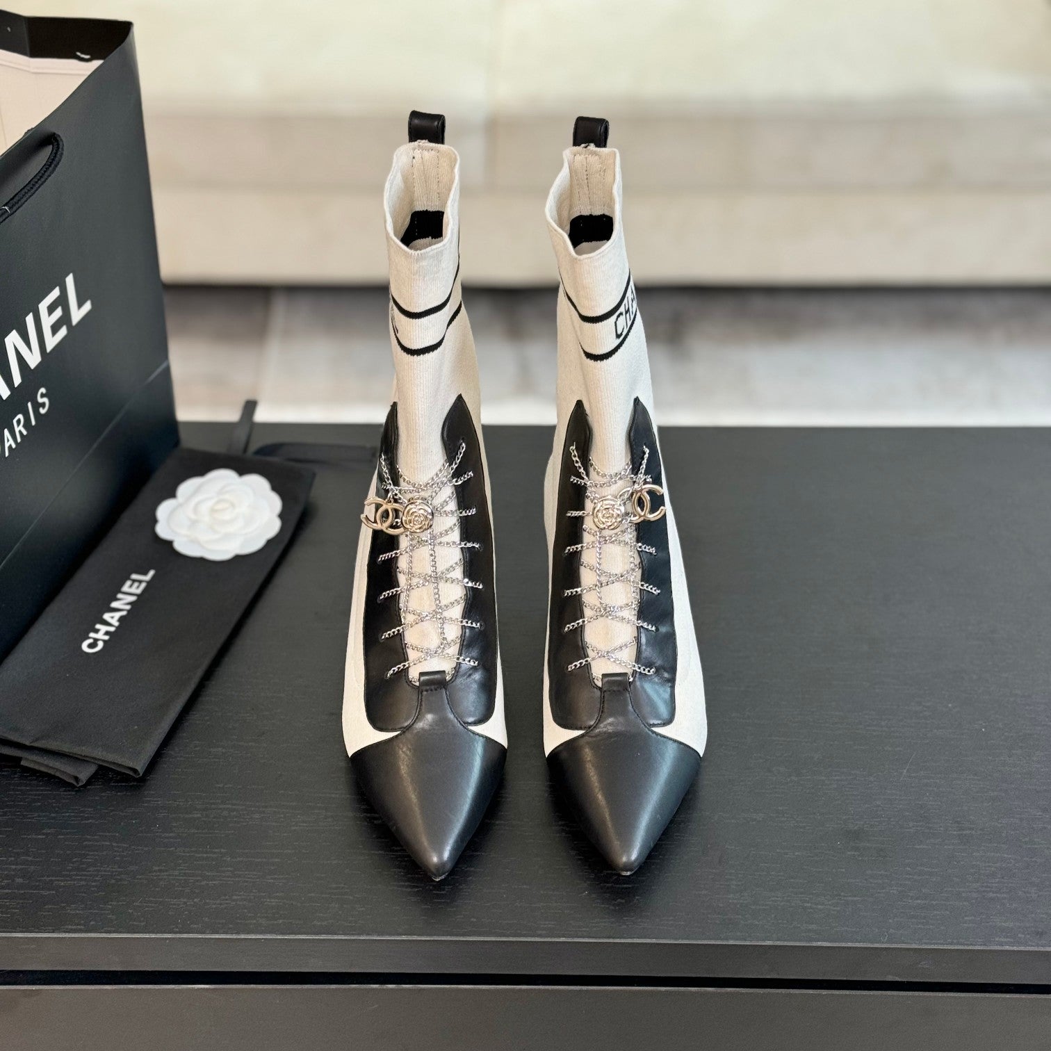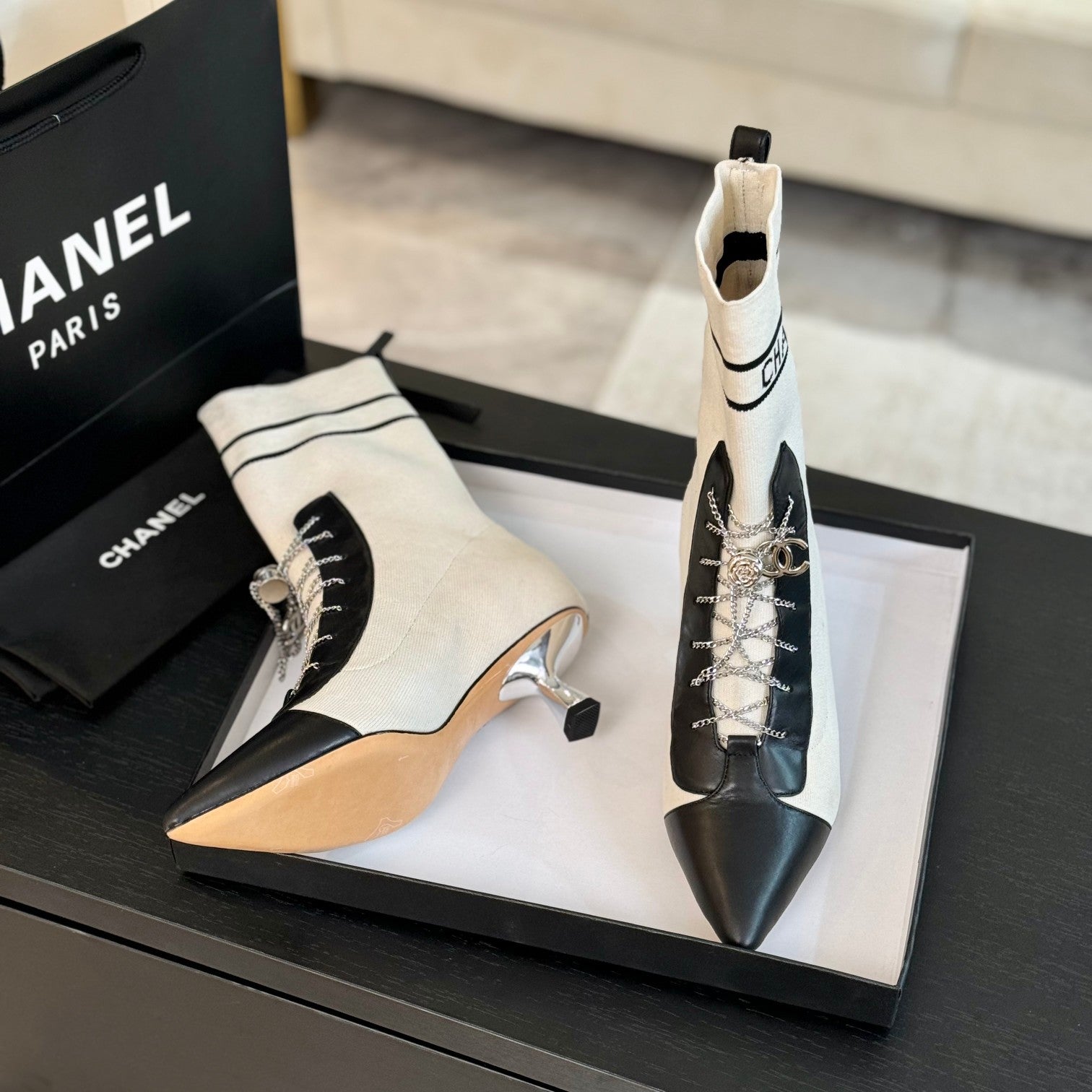 Stivaletti CC in lana e pelle di agnello con catena nera e bianca