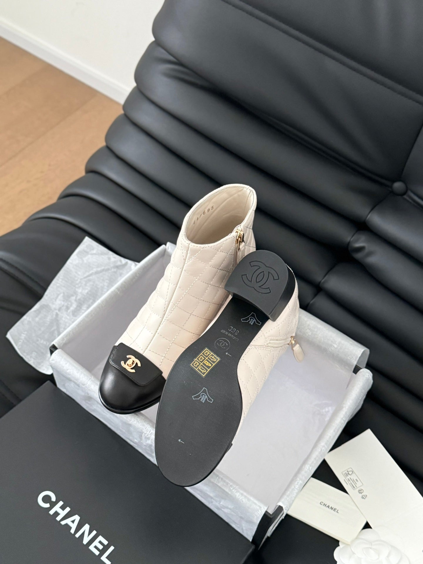 STIVALI CC CORTI 65 MM IN PELLE DI AGNELLO CON MOTIVO TRAPUNTATO BIANCO E NERO