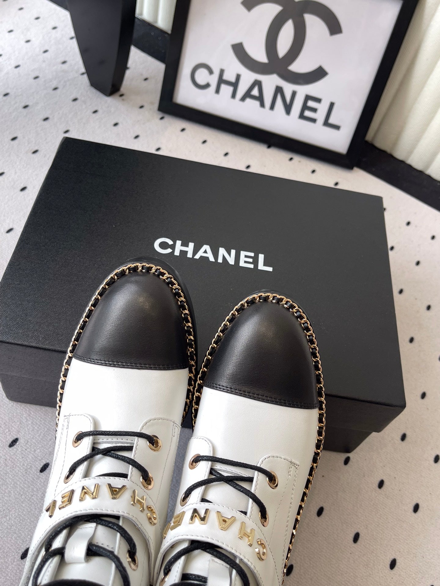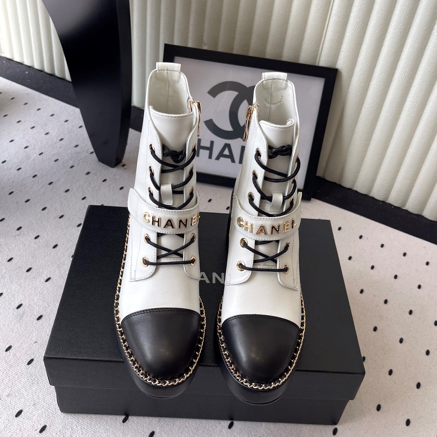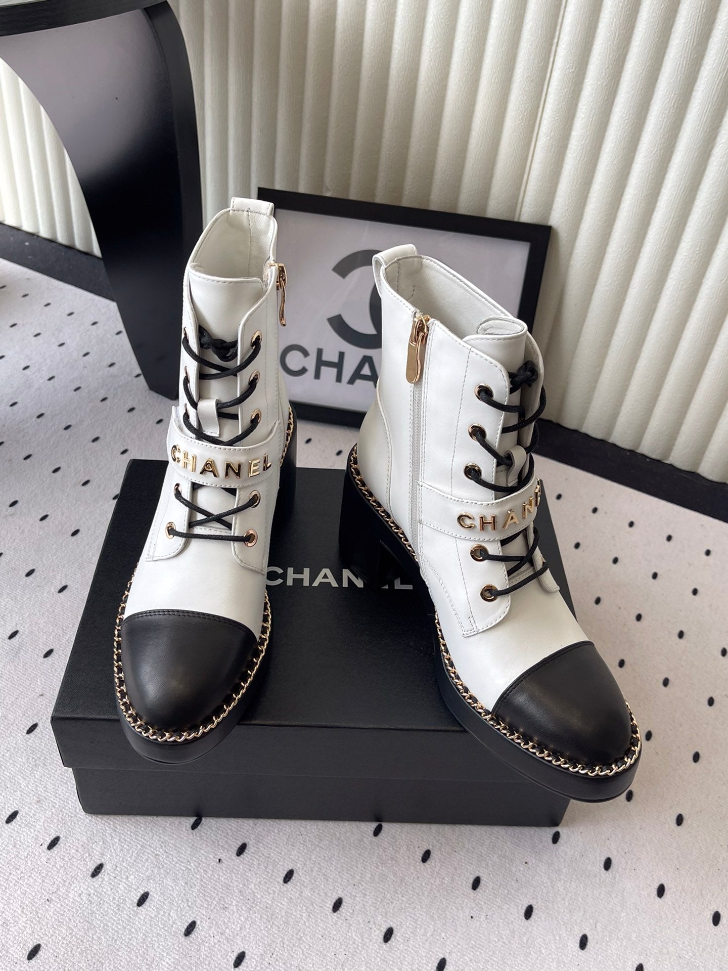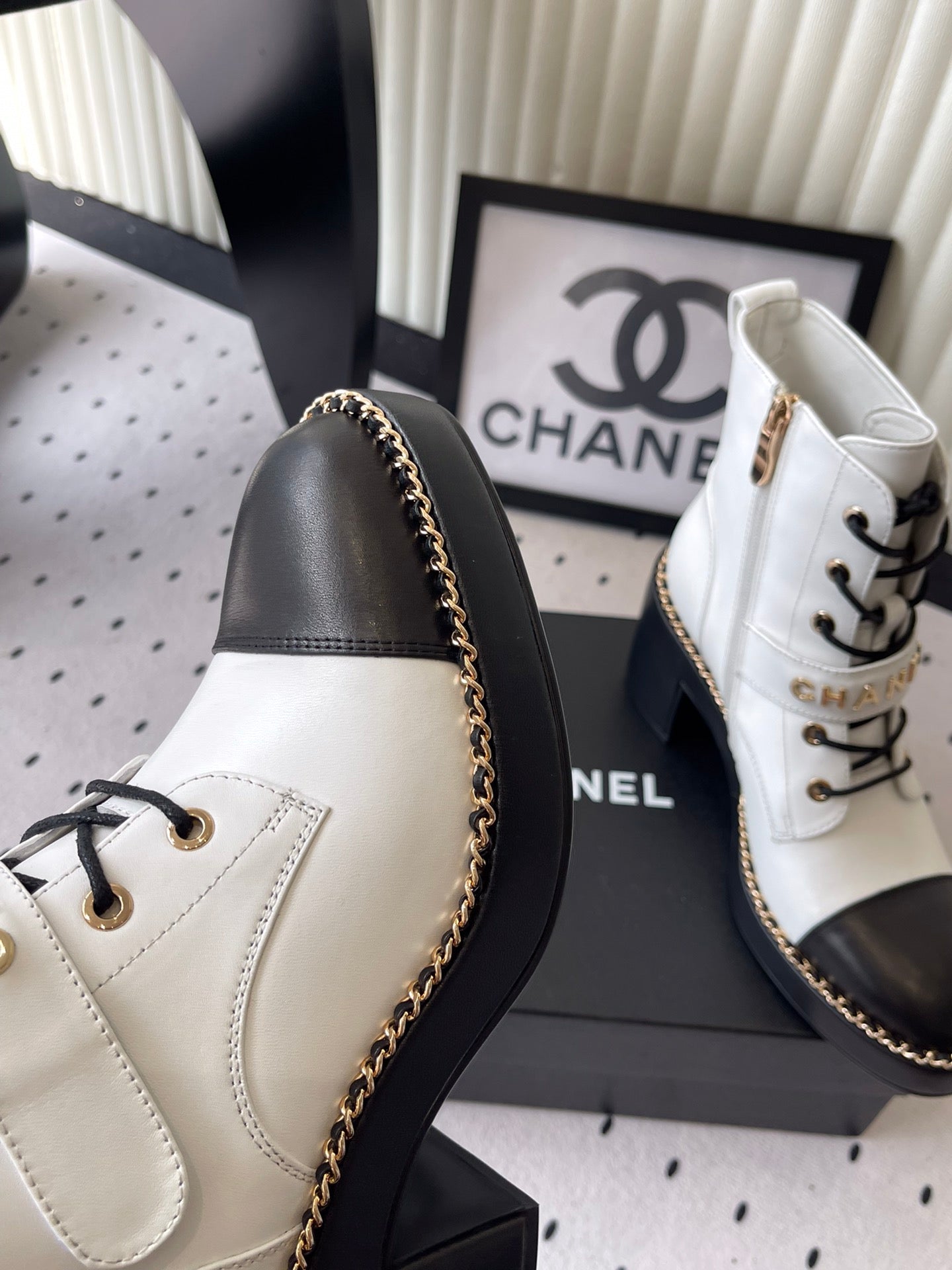 Stivali con fibbia CC e catena 100 mm in pelle di pecora bianca e nera GHW 432501