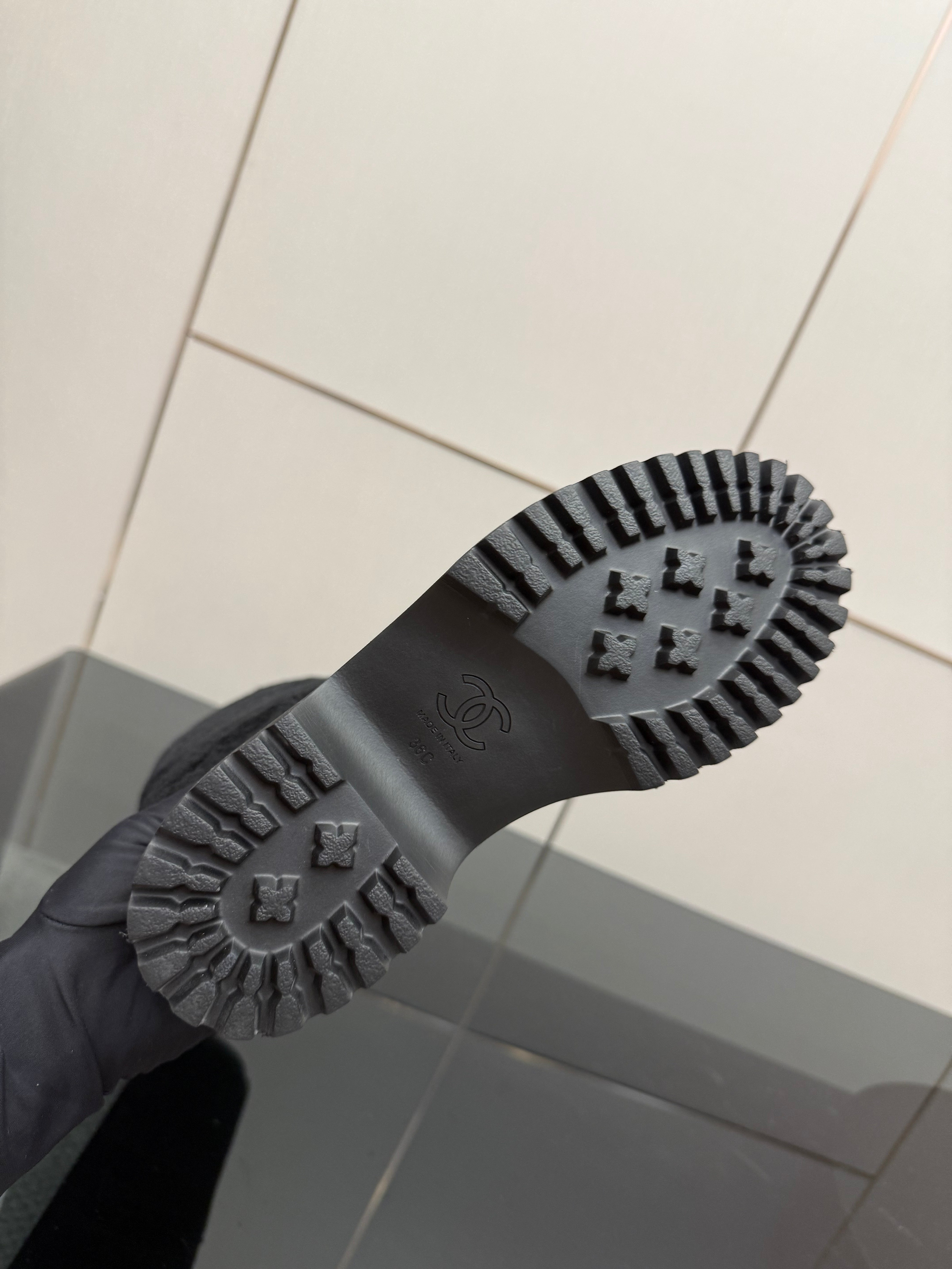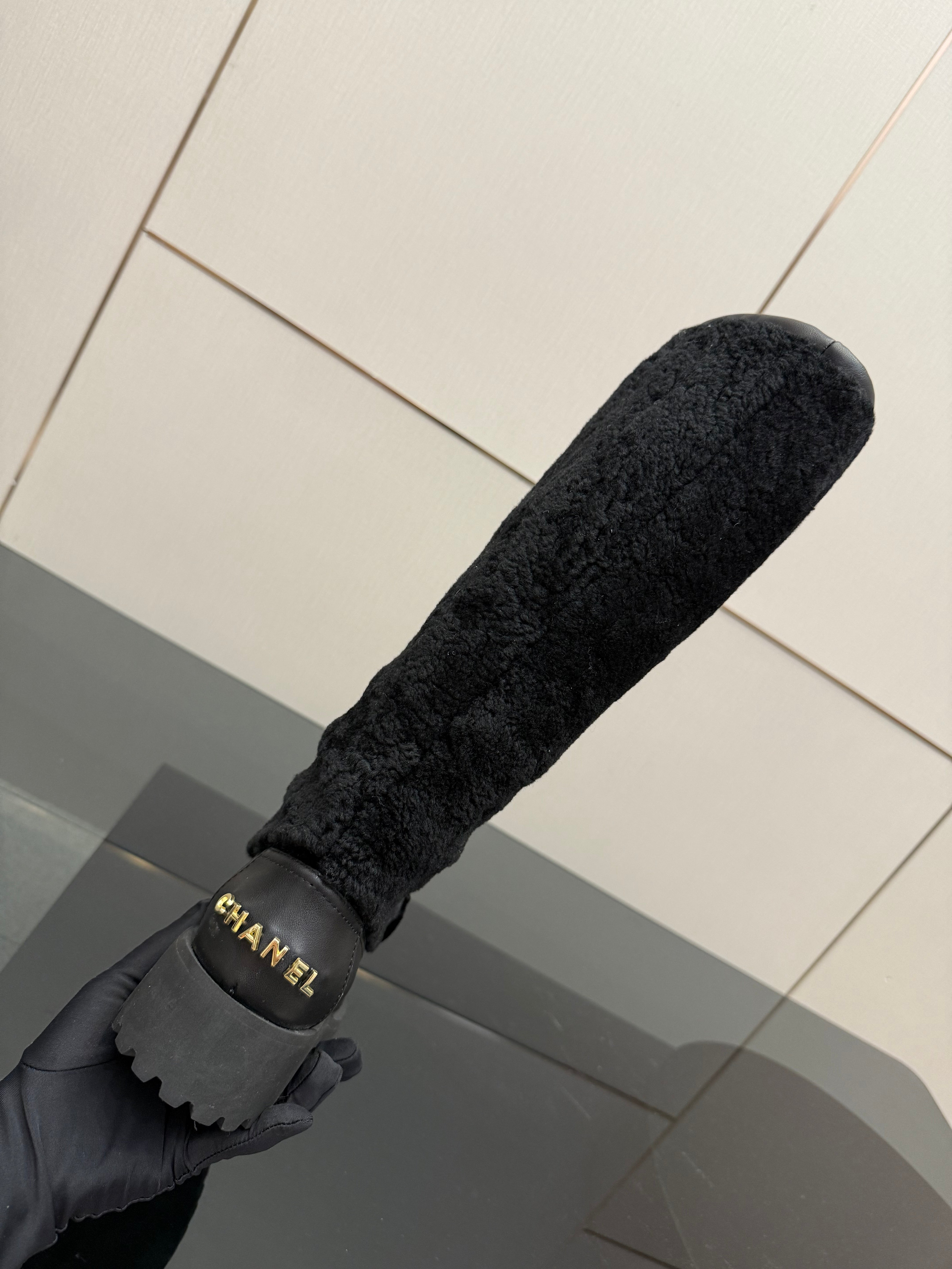 CC knee-high boots black sheepskin and wool 532192