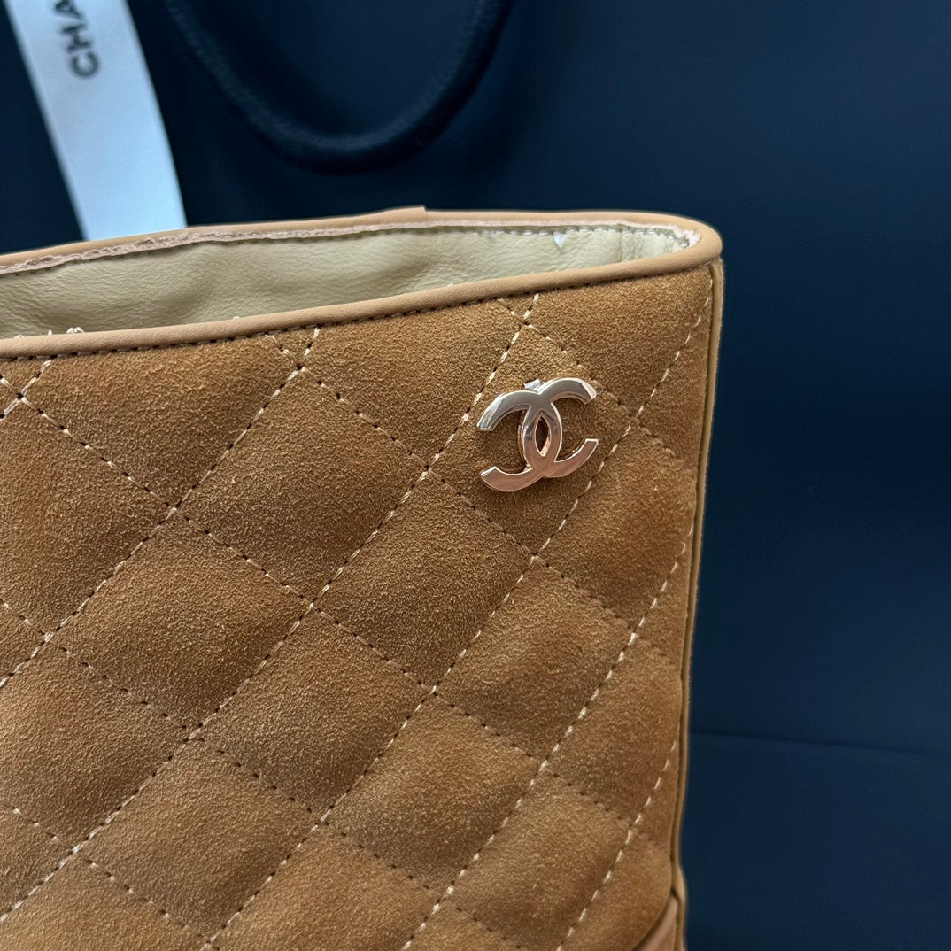 Stivali corti CC in pelle scamosciata trapuntata gialla