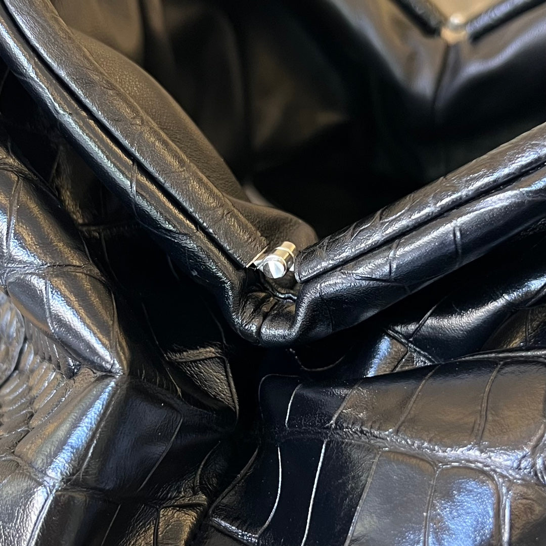 • Mini borsa a tracolla in pelle intrecciata con decorazioni metalliche annodate