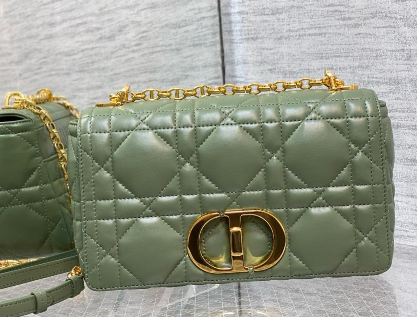 BORSA CARO MEDIA 25 VERDE MACROCANNAGE PELLE DI VITELLO