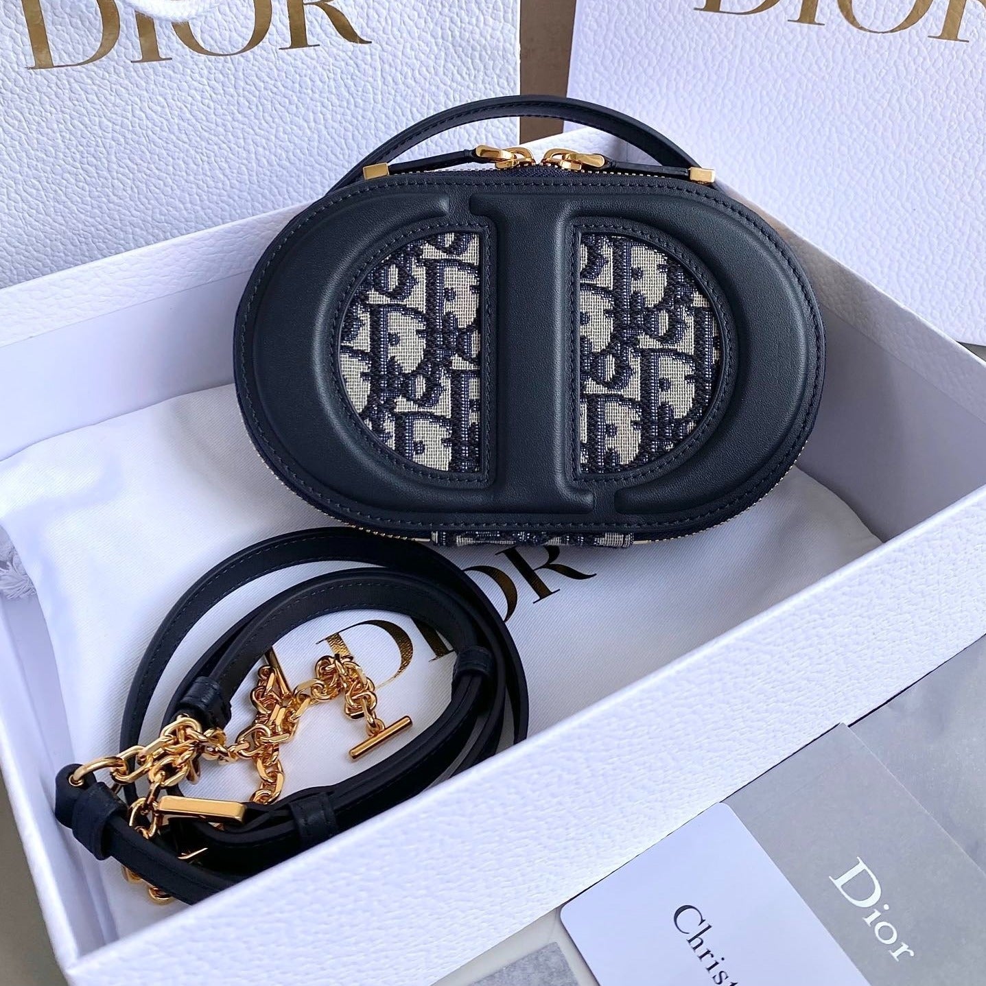 BORSA OVALE SIGNATURE 18 IN JACQUARD OBLIQUO BLU