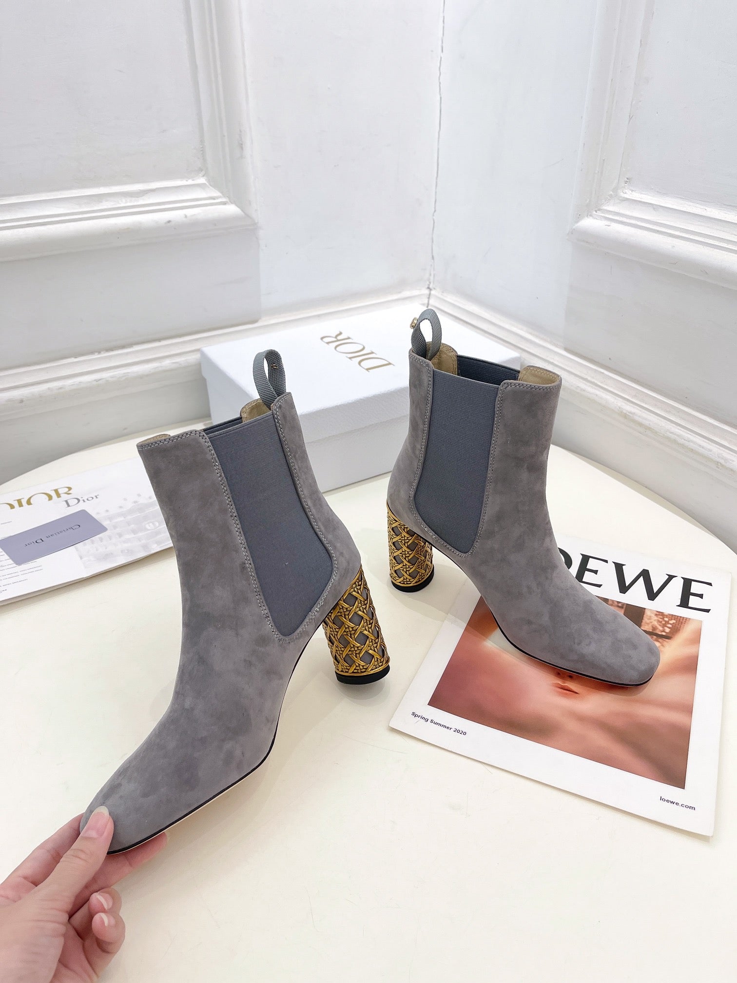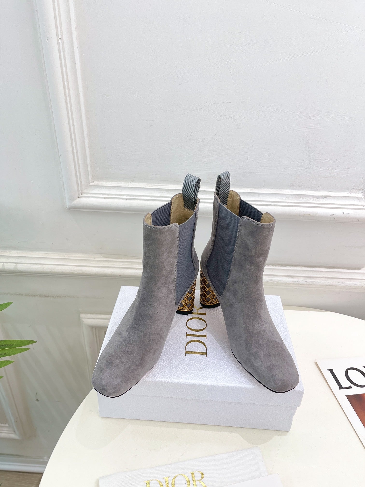 Stivaletto con tacco CD Icon 80mm in pelle scamosciata grigia