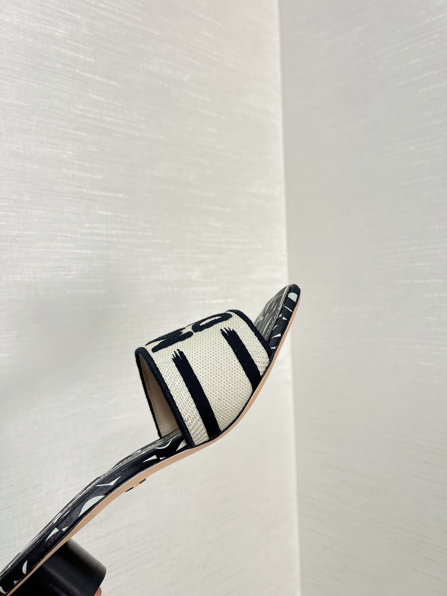 Dway ciabatte con tacco 35 in cotone ricamato nero motivo Miss CD all-lover