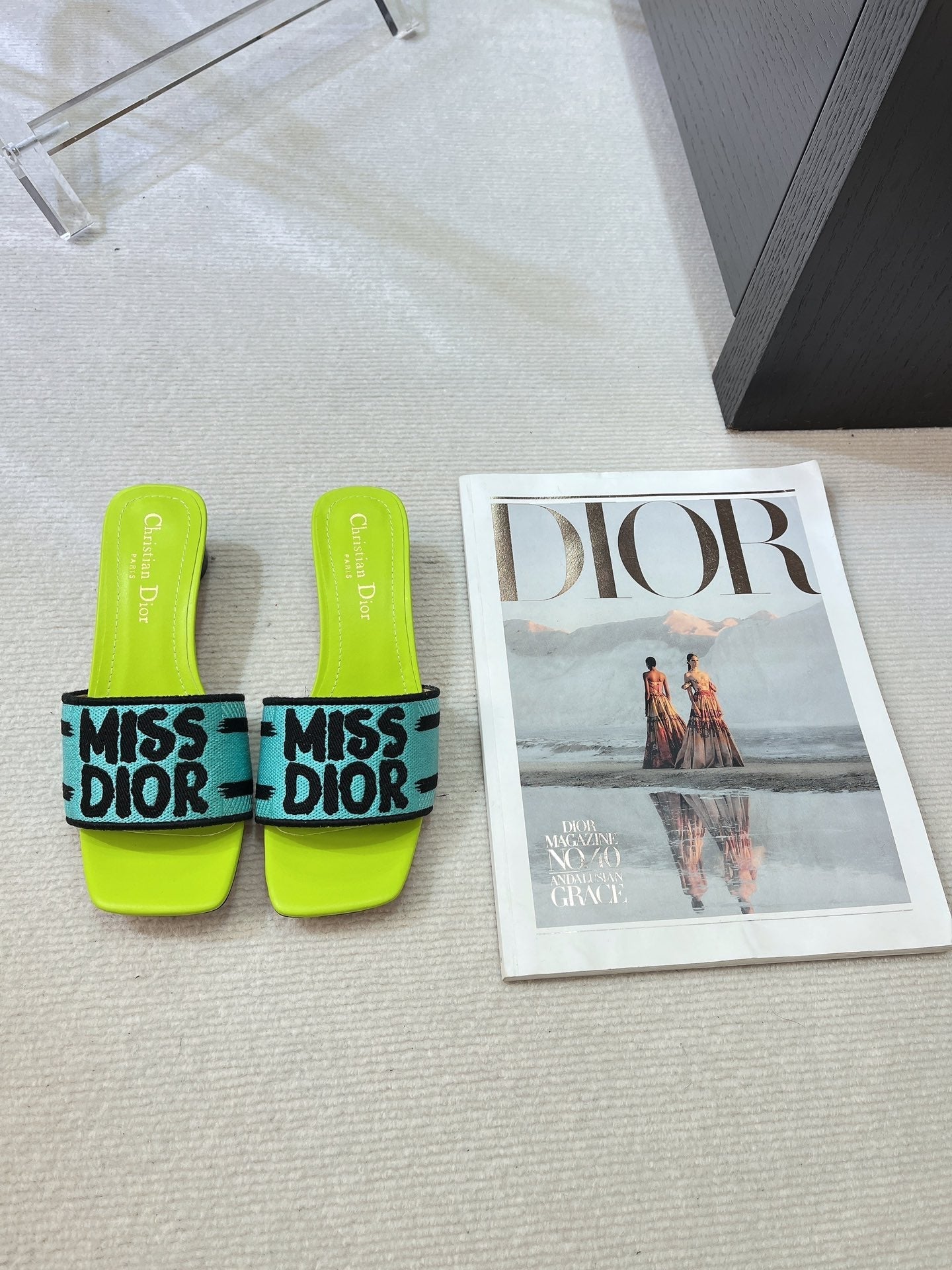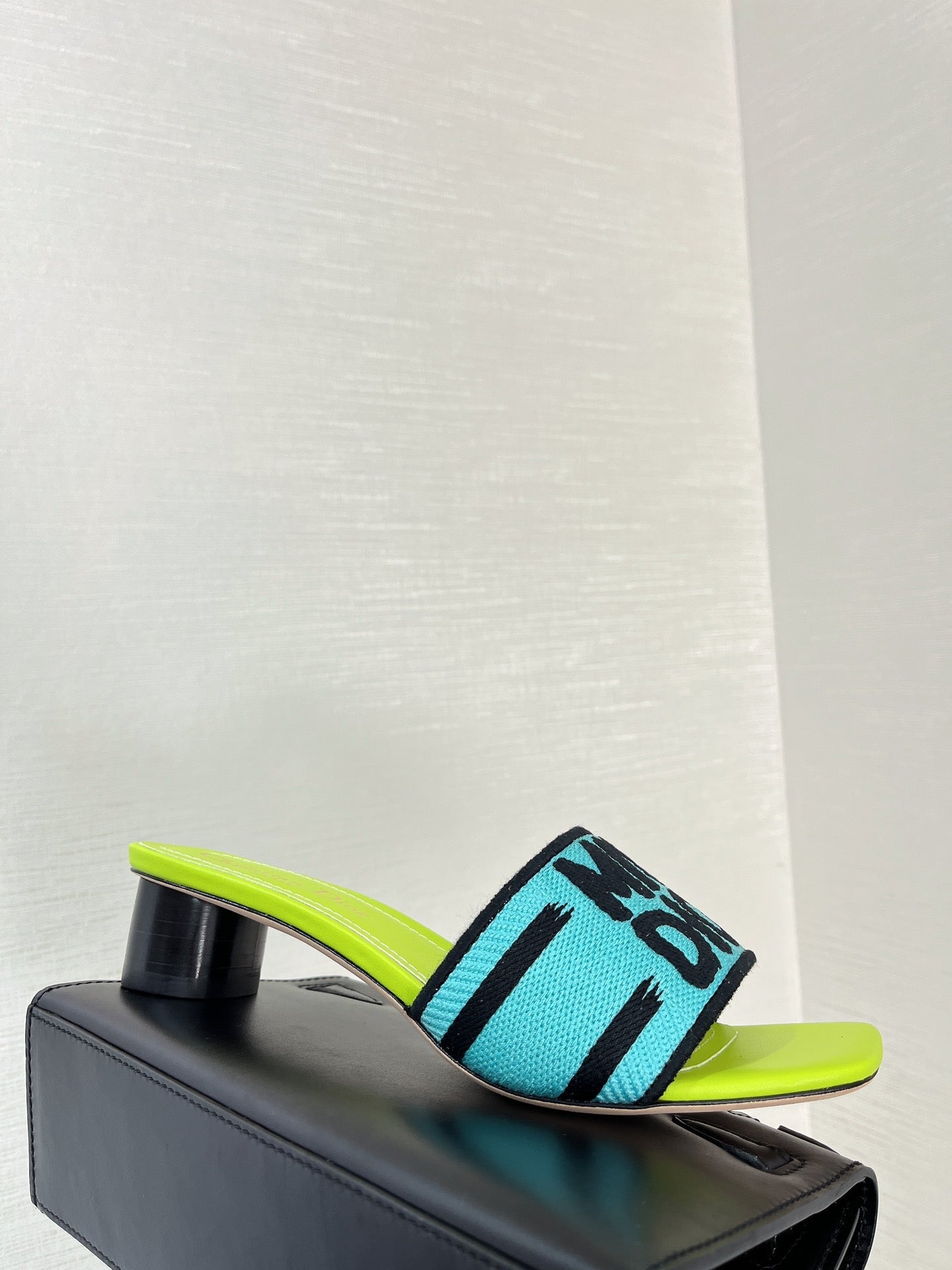 Ciabatte con tacco Dway 35 blu lime in cotone ricamato