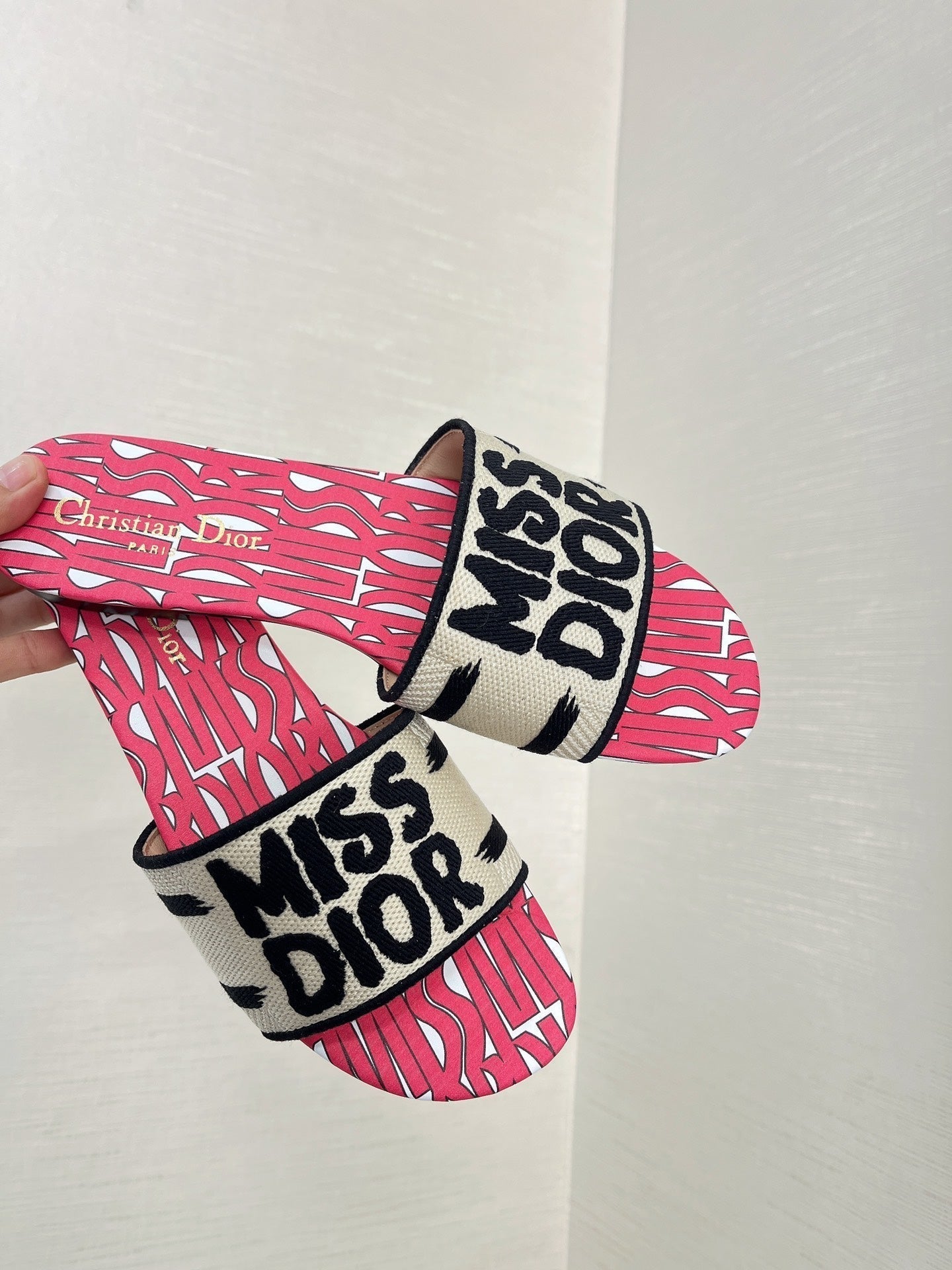 dway slide cotone ricamato rosso miss cd motivo alllover
