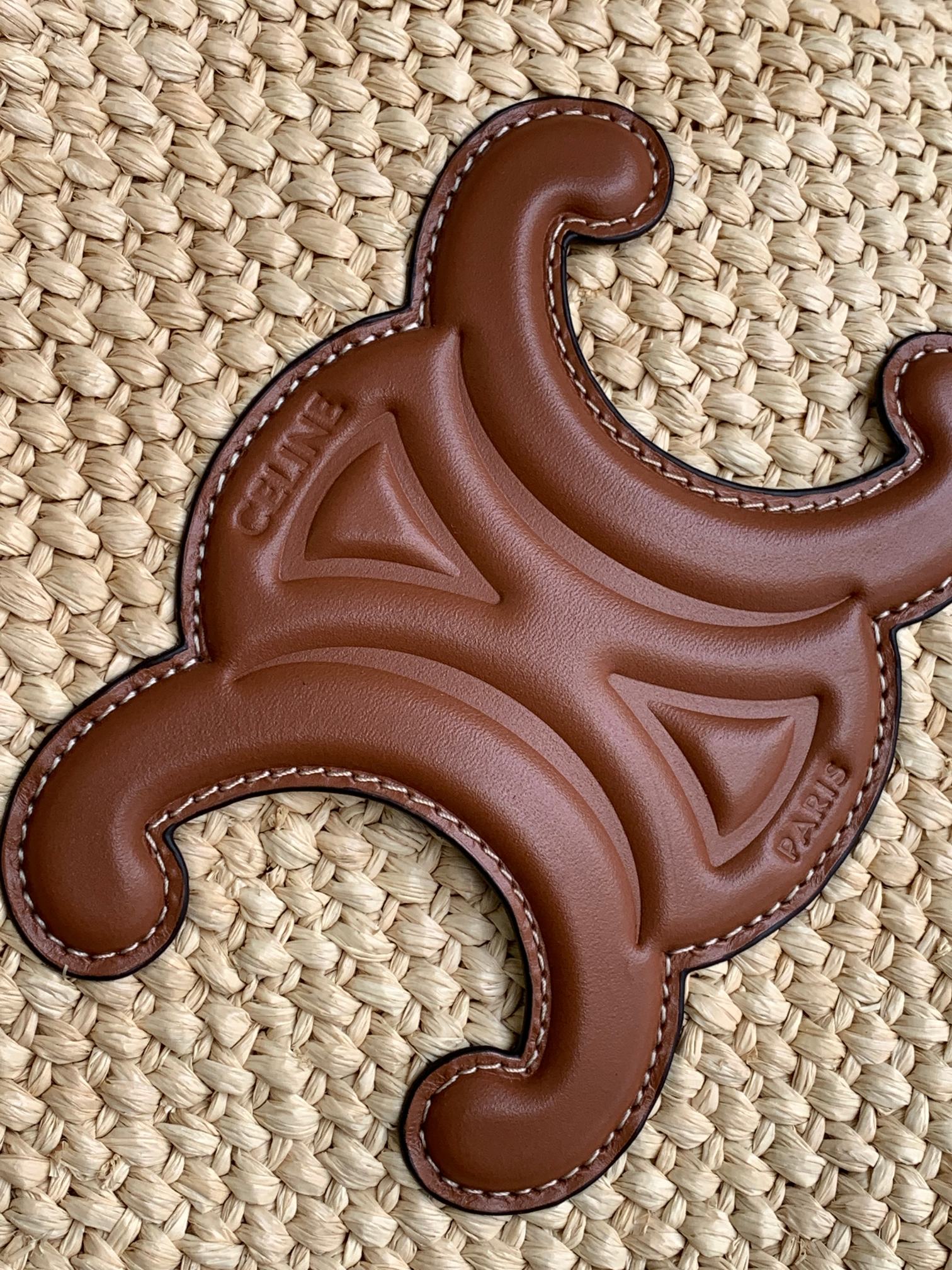 borsa a secchiello in paglia Teen Triomphe 23cm in rafia marrone vitello