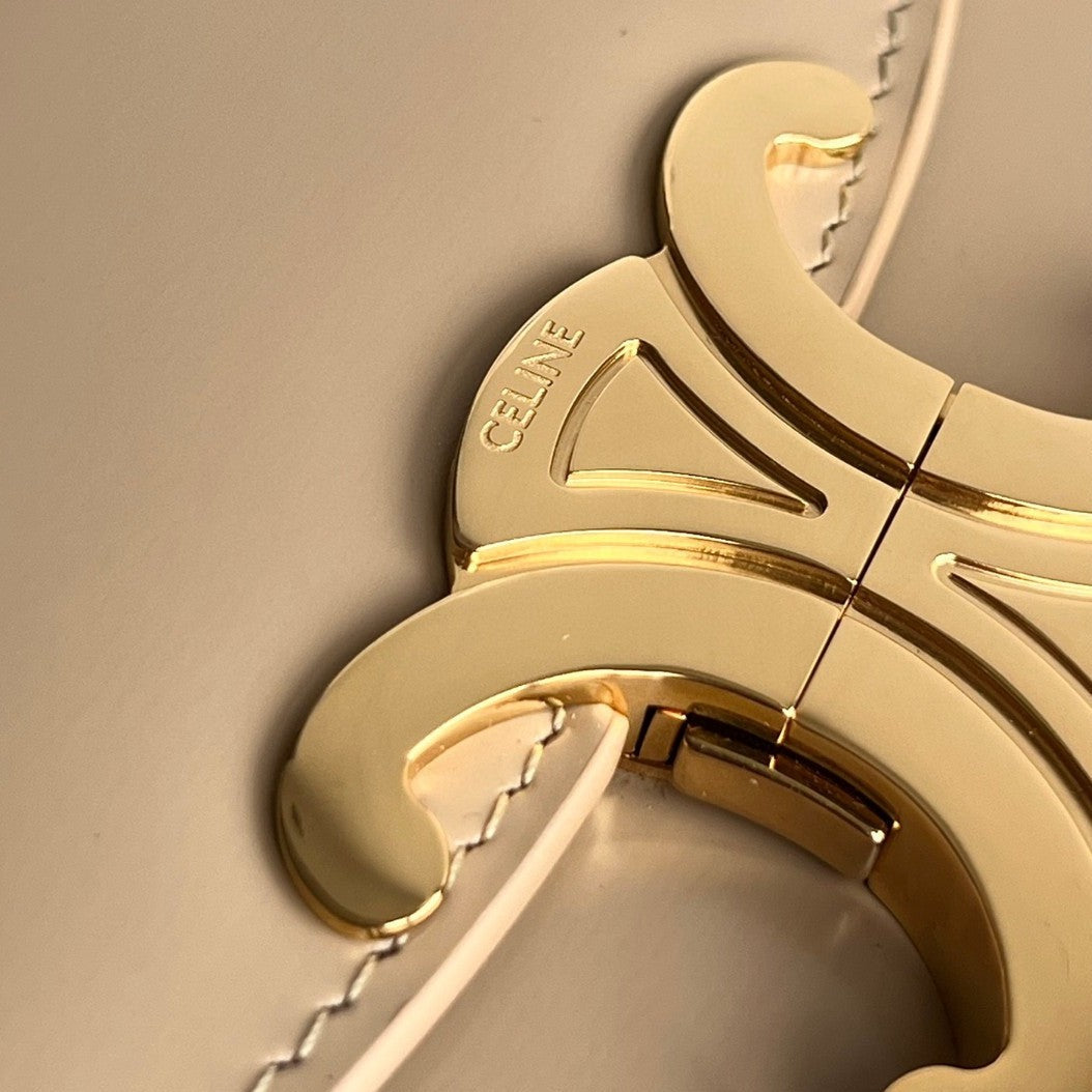 Borsa a mano TRIOMPHE 15 in pelle di vitello grigio crema
