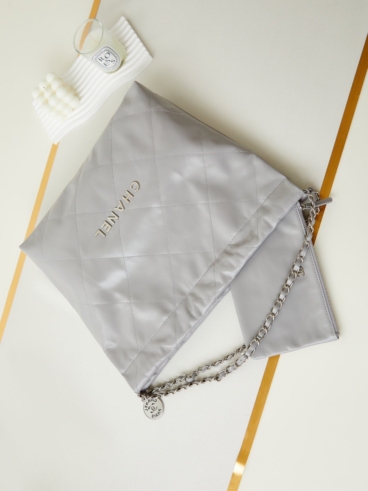 cc 22 hobo in pelle di vitello grigia con finiture in argento