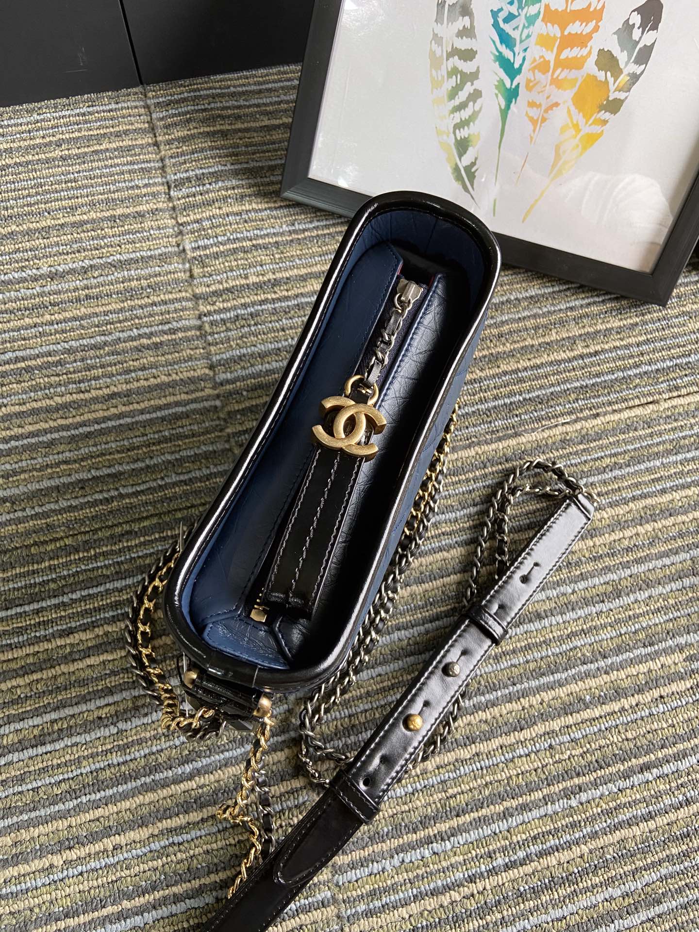 BORSA HOBO CC MEDIUM 20 IN PELLE DI VITELLO NERA E BLU EGEO CON TRACOLLA
