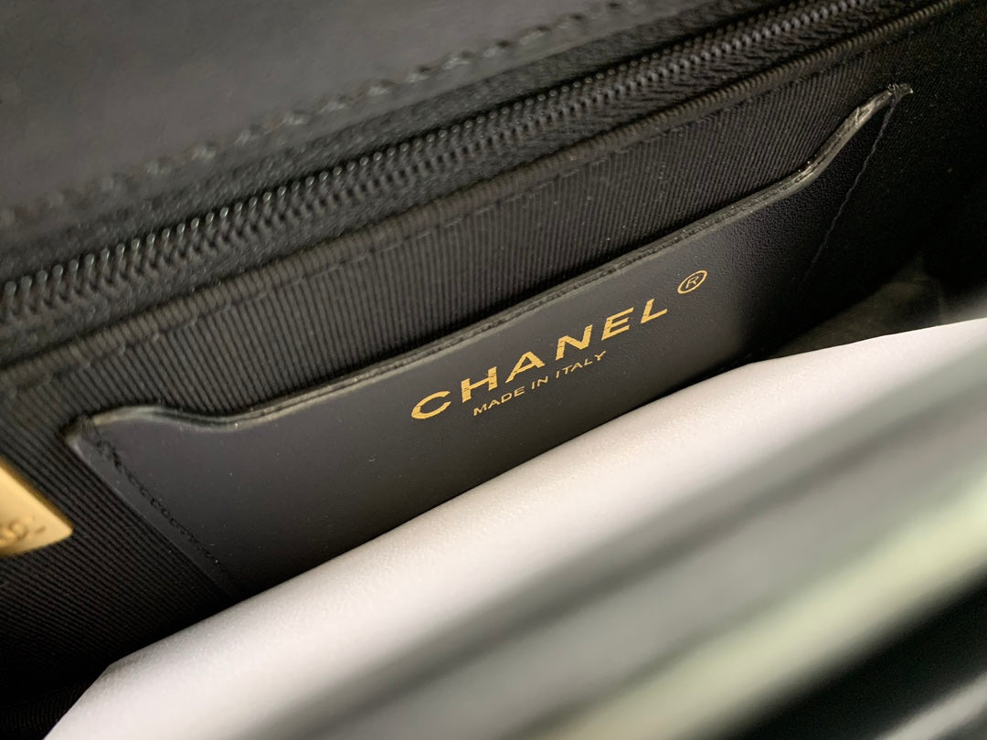 Borsa CC Quilted Mini Graphic Catch Flap in pelle di agnello nera