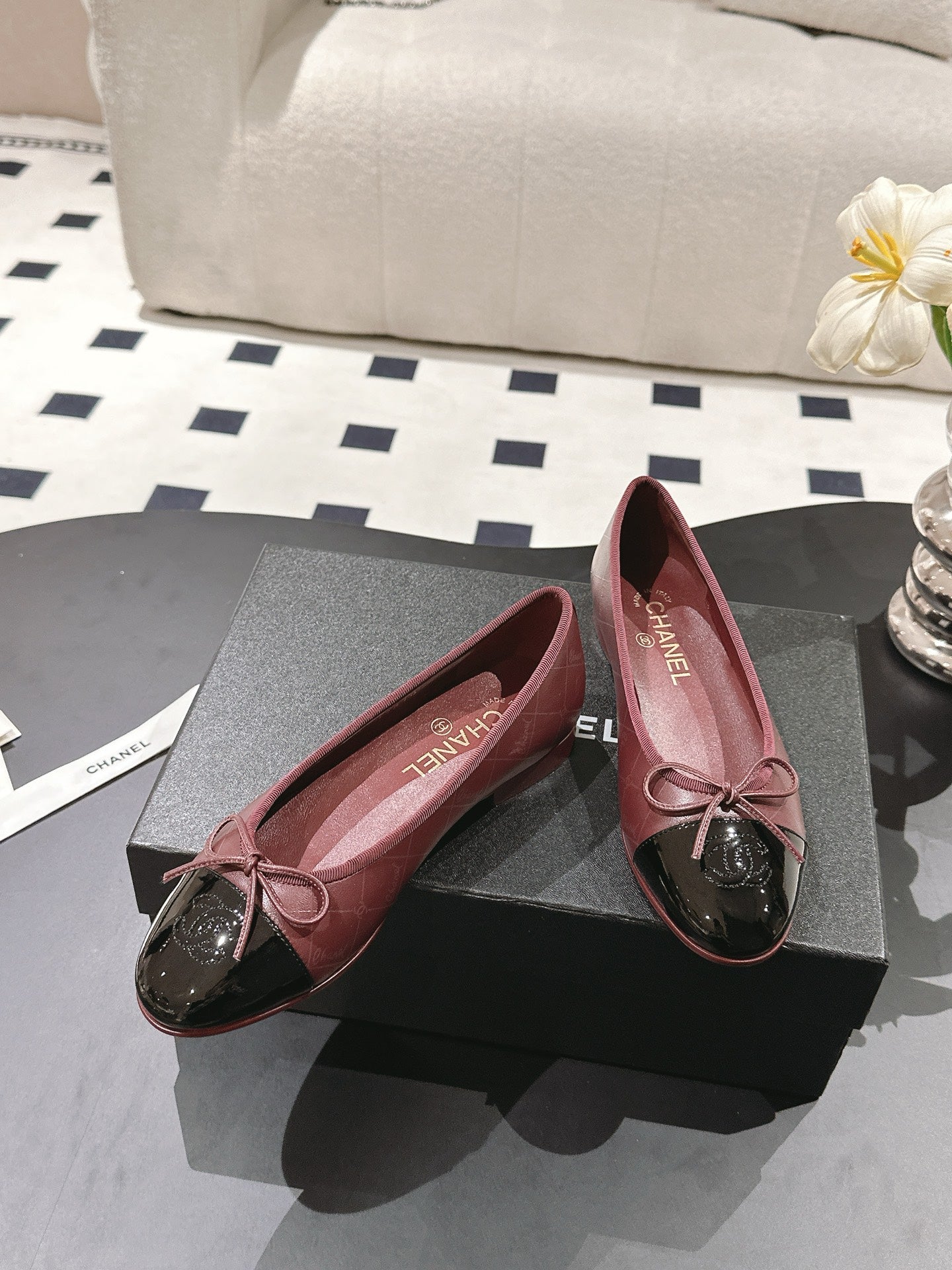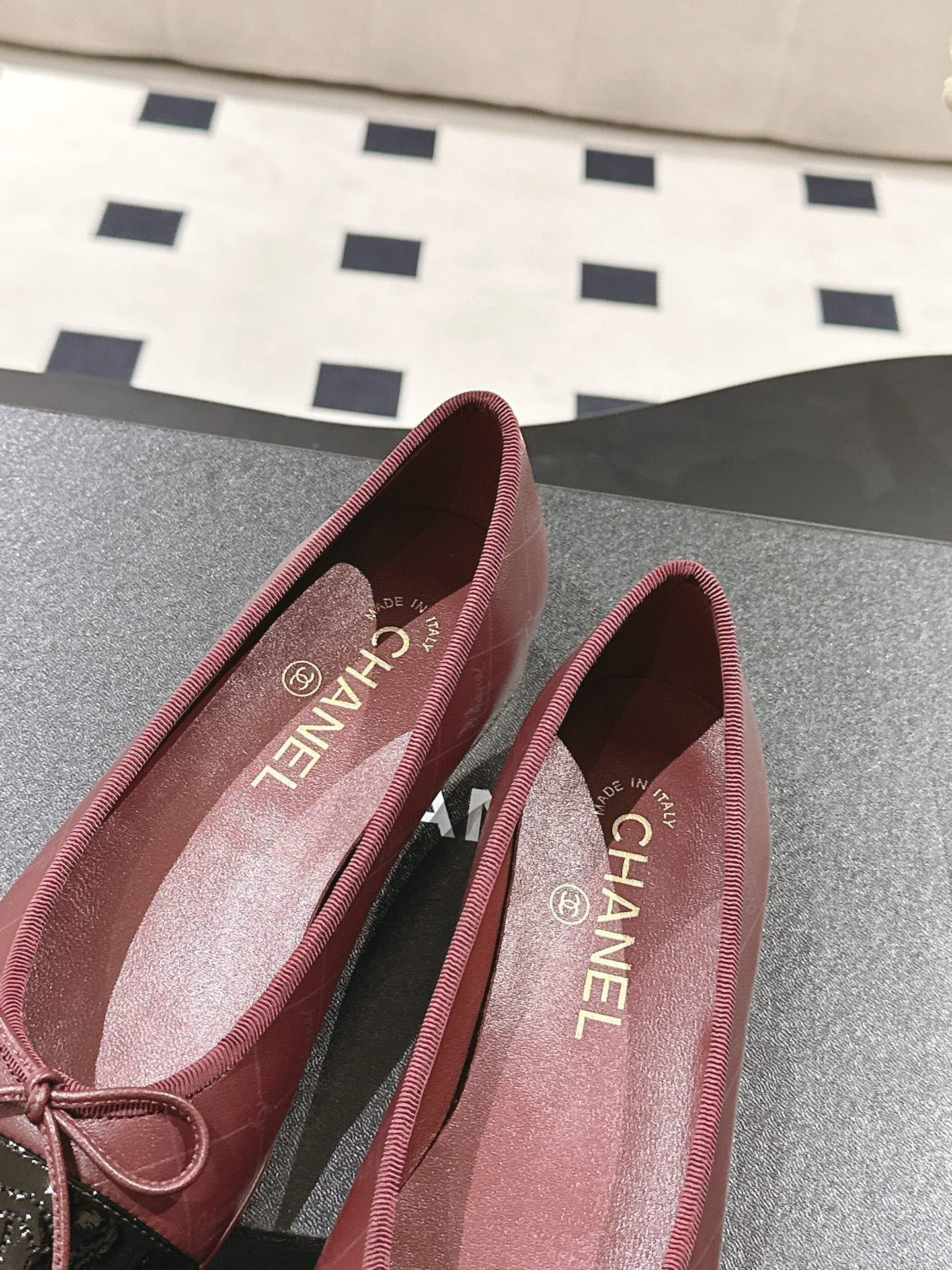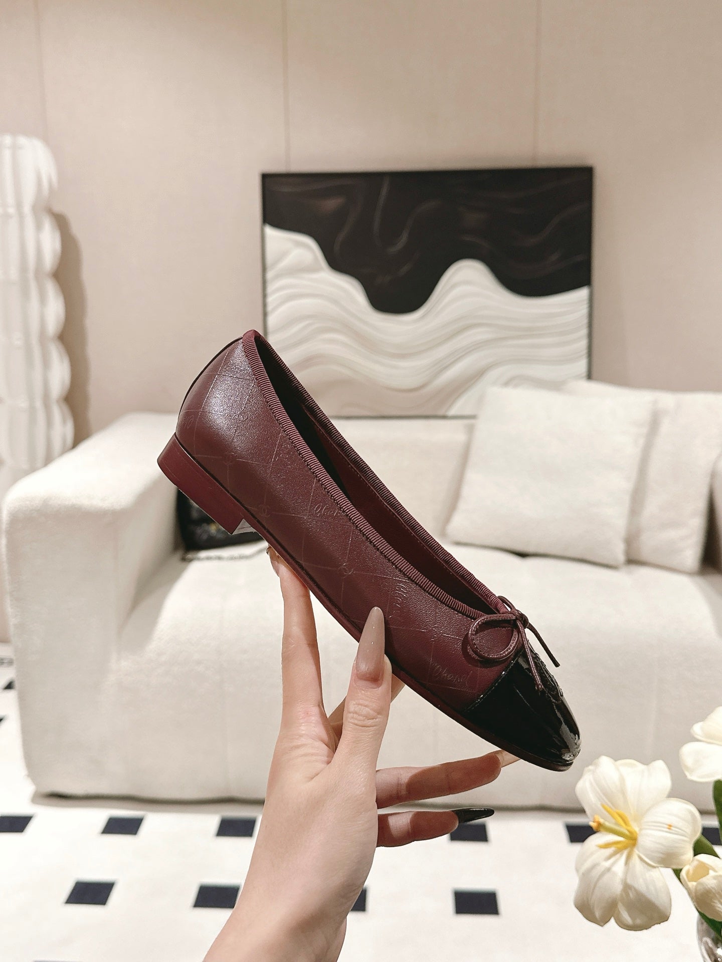cc 25c ballerina con motivo a linee incrociate in pelle di agnello bordeaux 237483