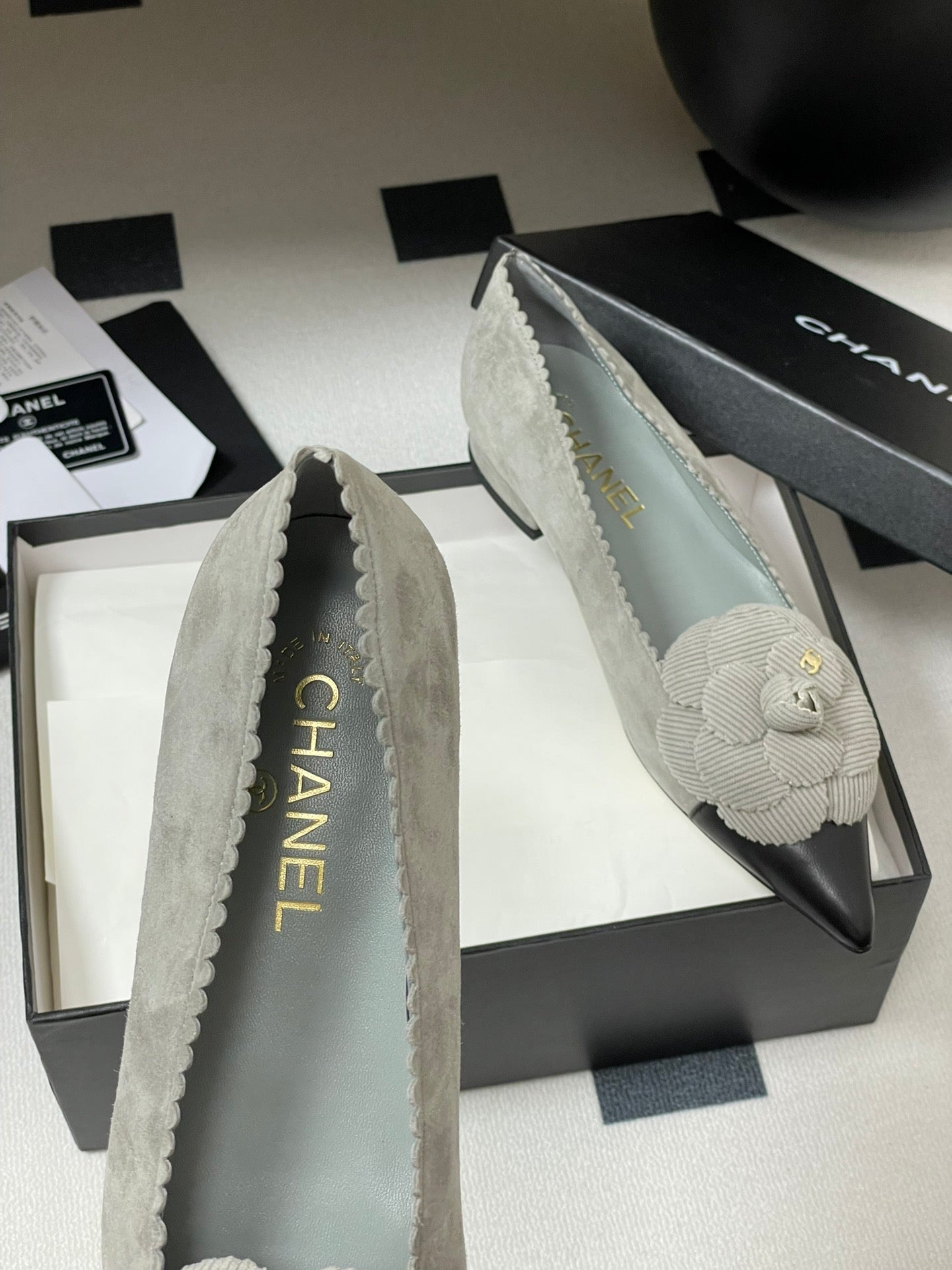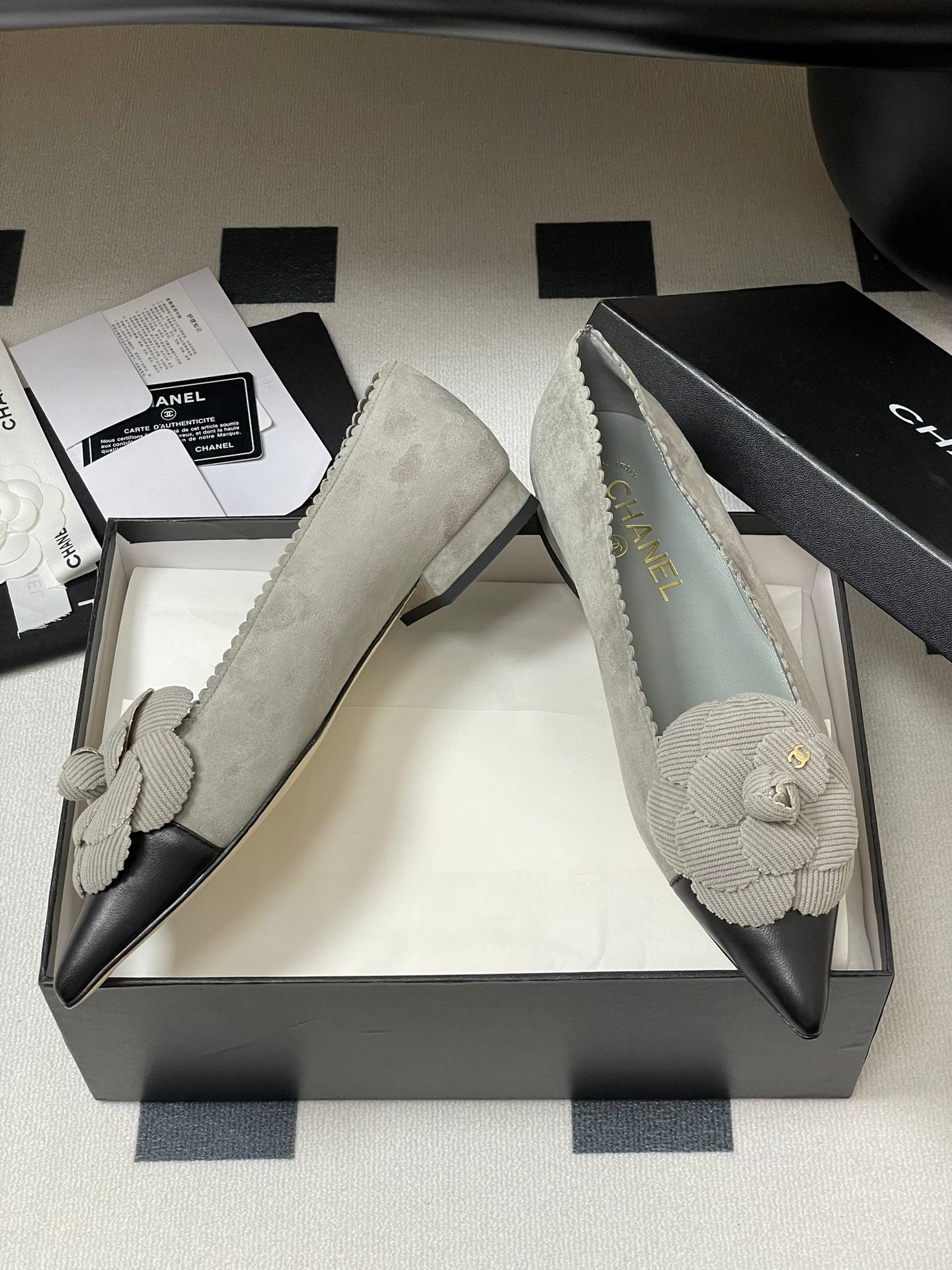 CC 25C Classic Camellia Scarpe con tacco alto a punta piatte 15 mm in pelle scamosciata grigia 247607