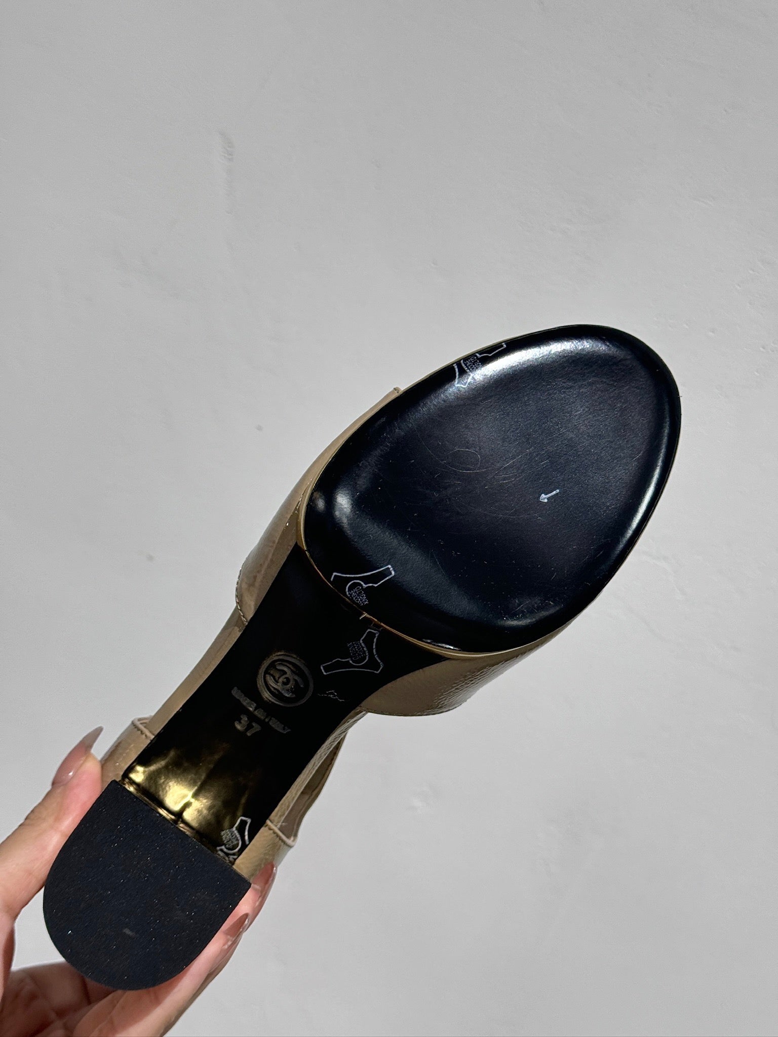 SANDALI CON TACCO A BLOCCO IN PELLE DI MONTONE BEIGE