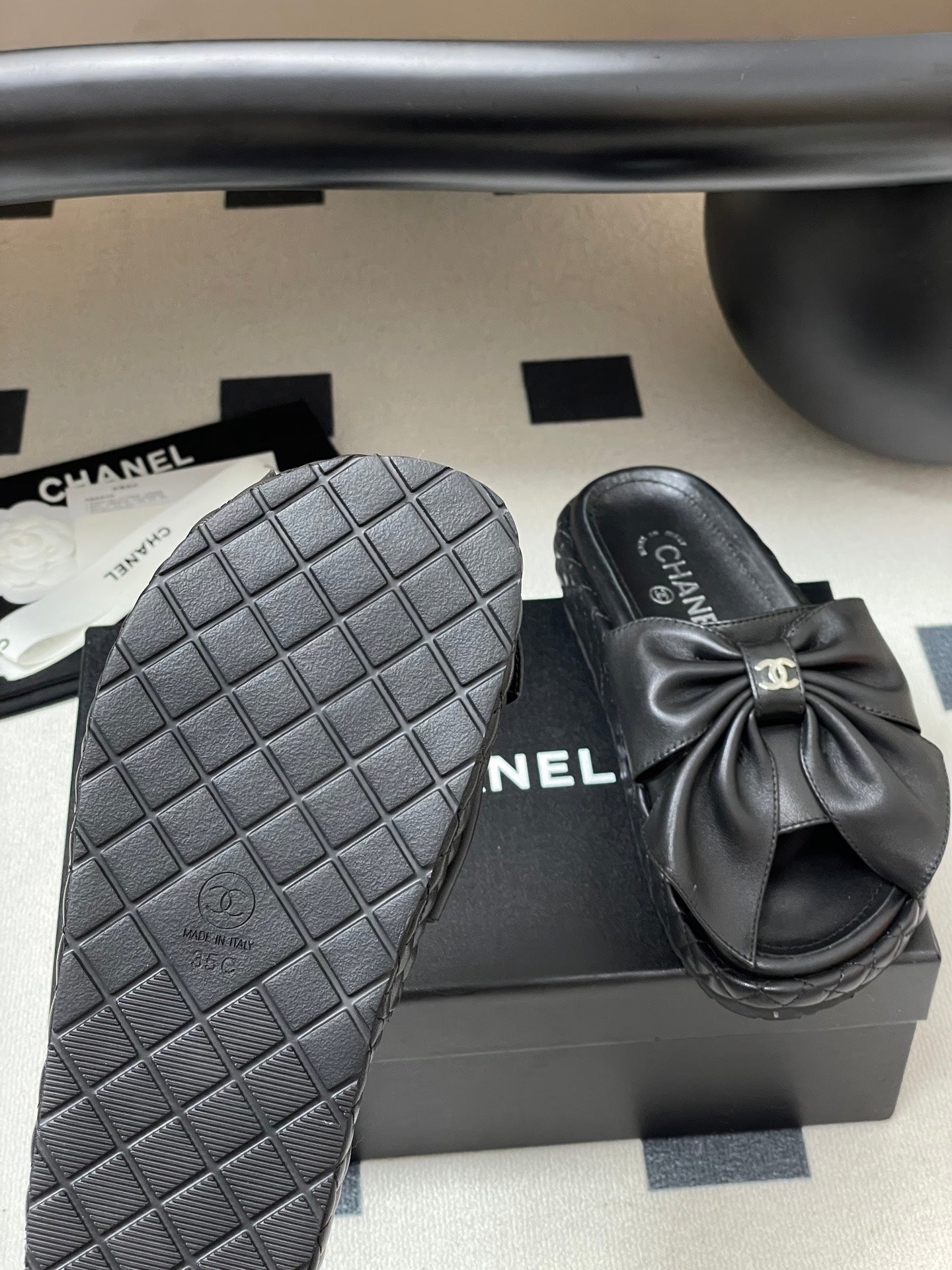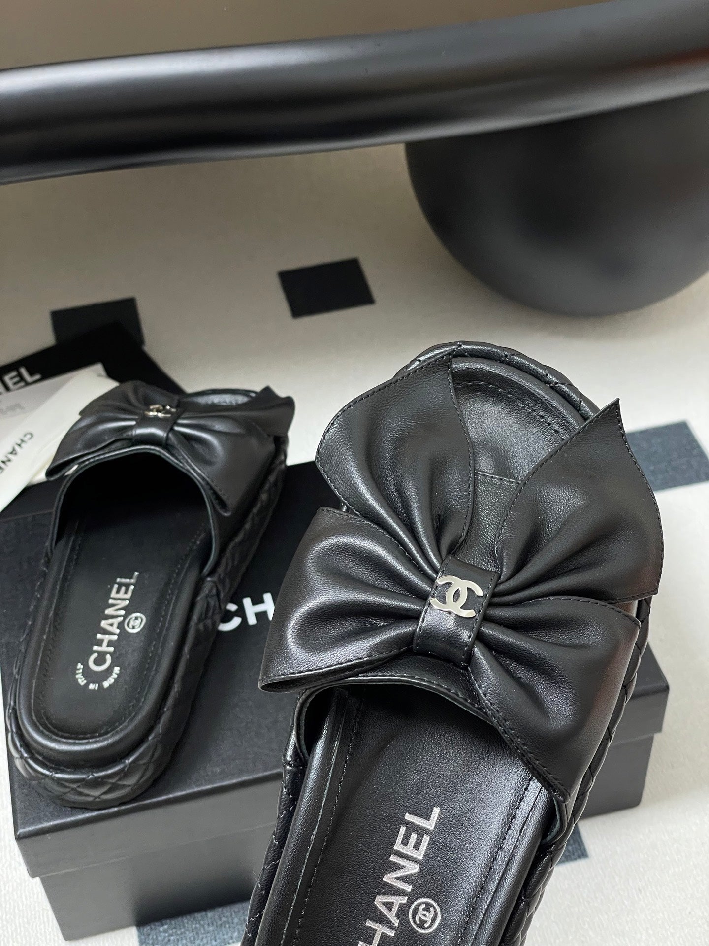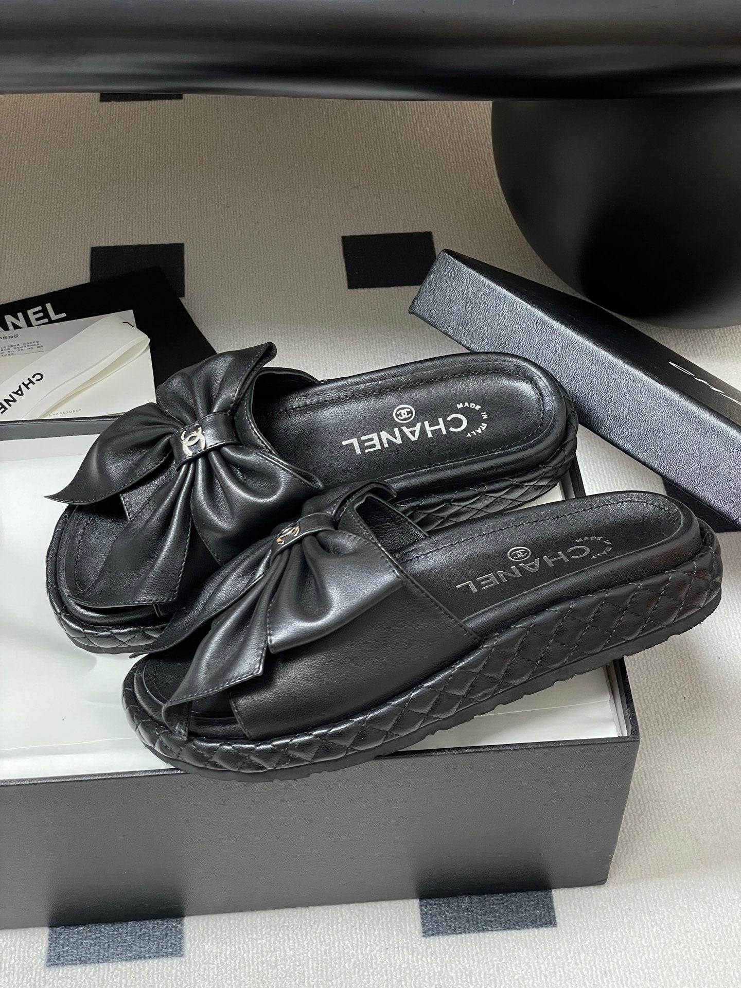 CC 25SS Big Bow Sandali con suola spessa in pelle di agnello nera 319708