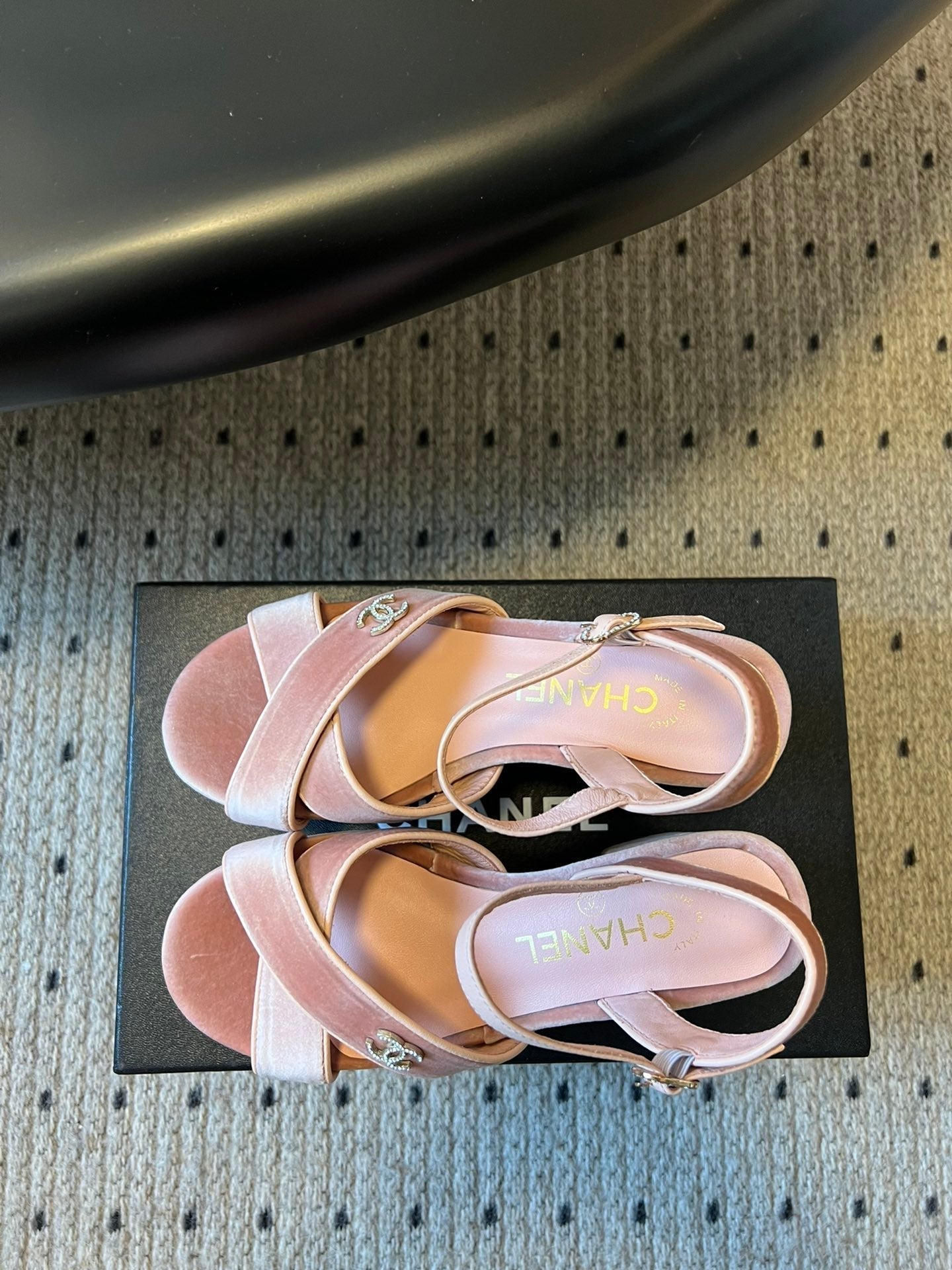 Sandali con plateau CC 25SS 5,5 cm in pelle di agnello rosa e velluto 319626