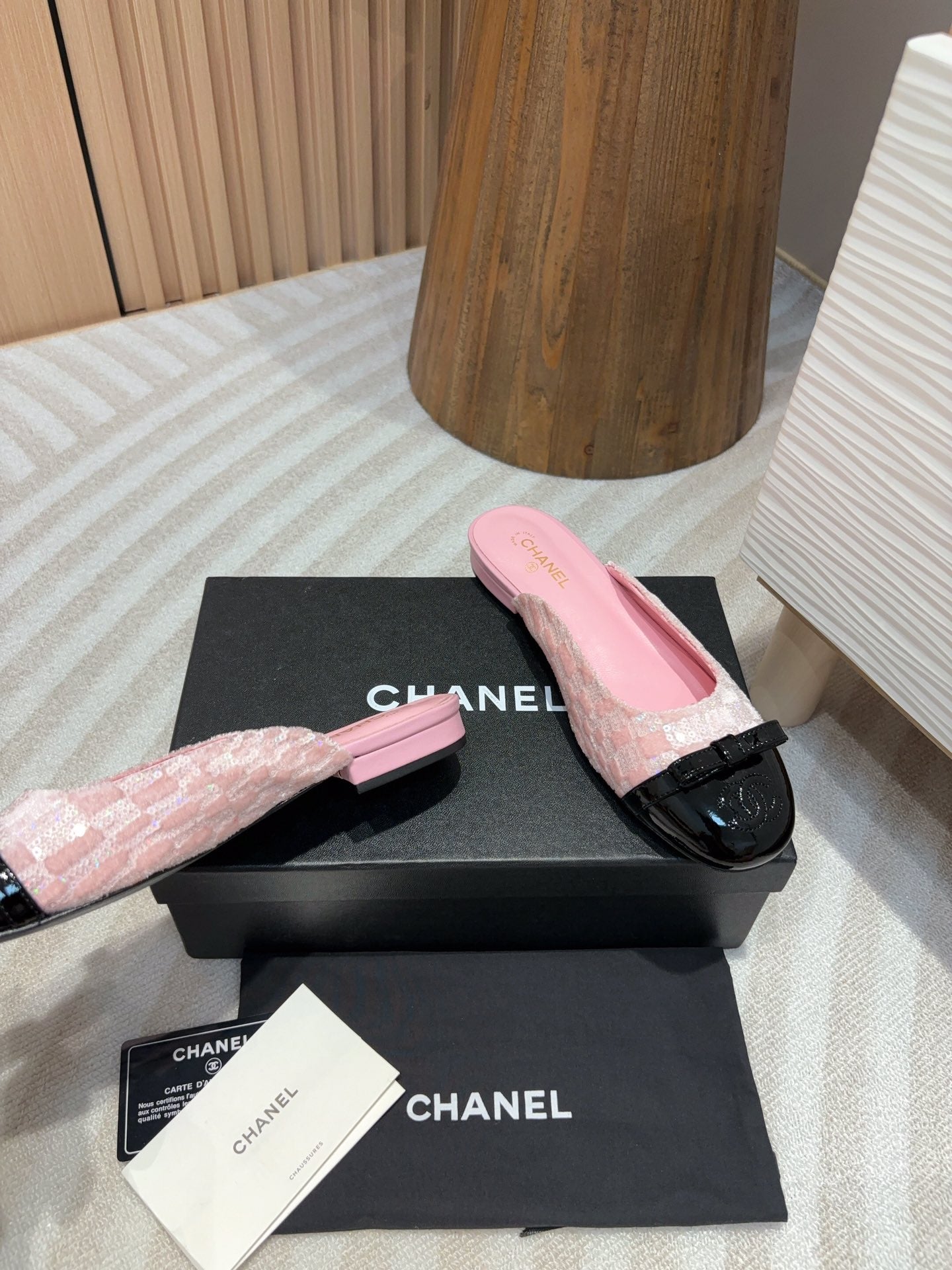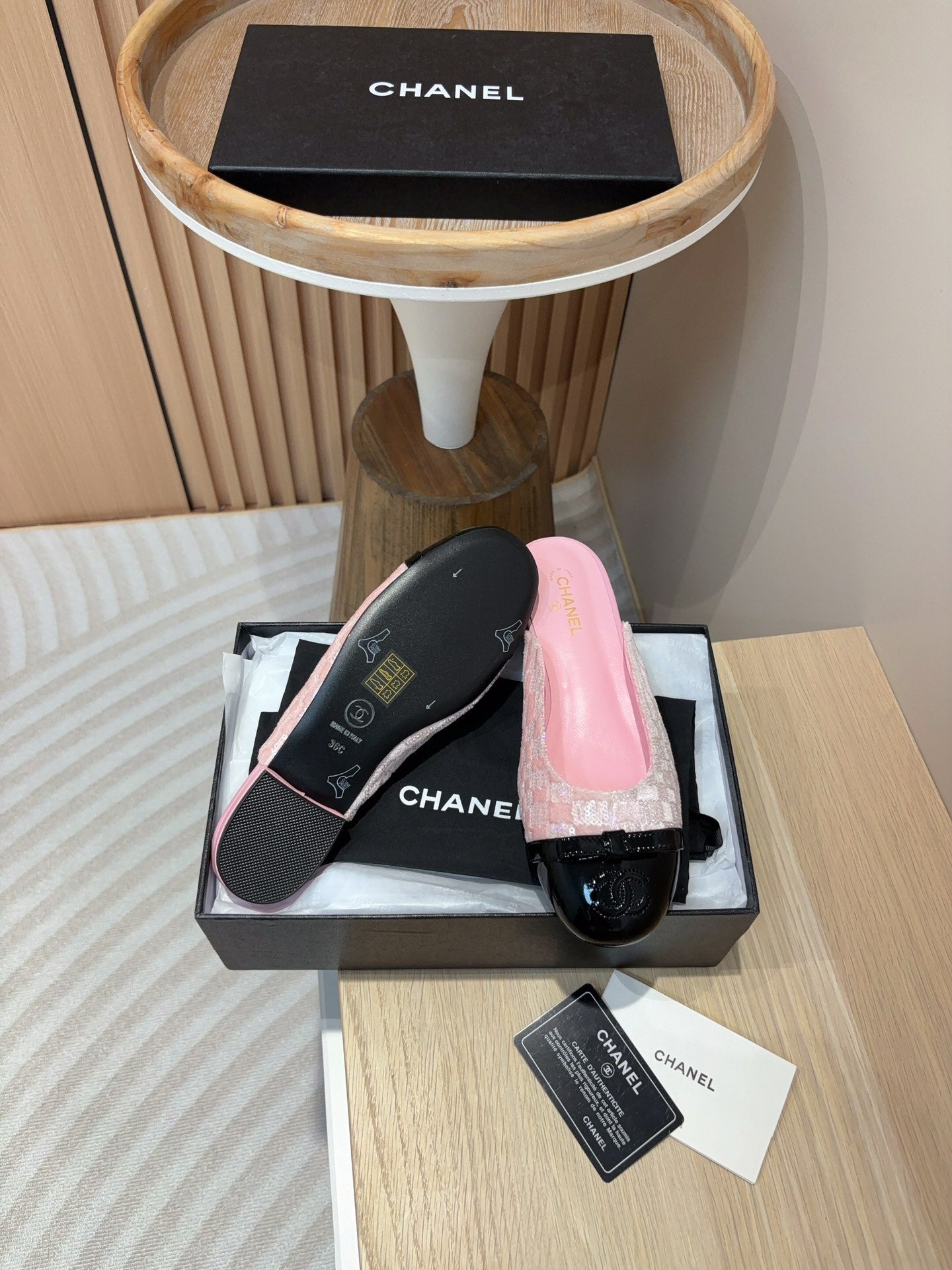 cc mule tweed rosa paillettes pelle di vitello verniciata nera