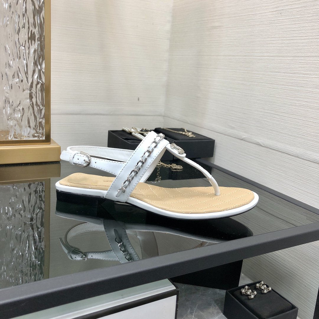 sandalo cc bianco beige trapuntato in pelle di agnello