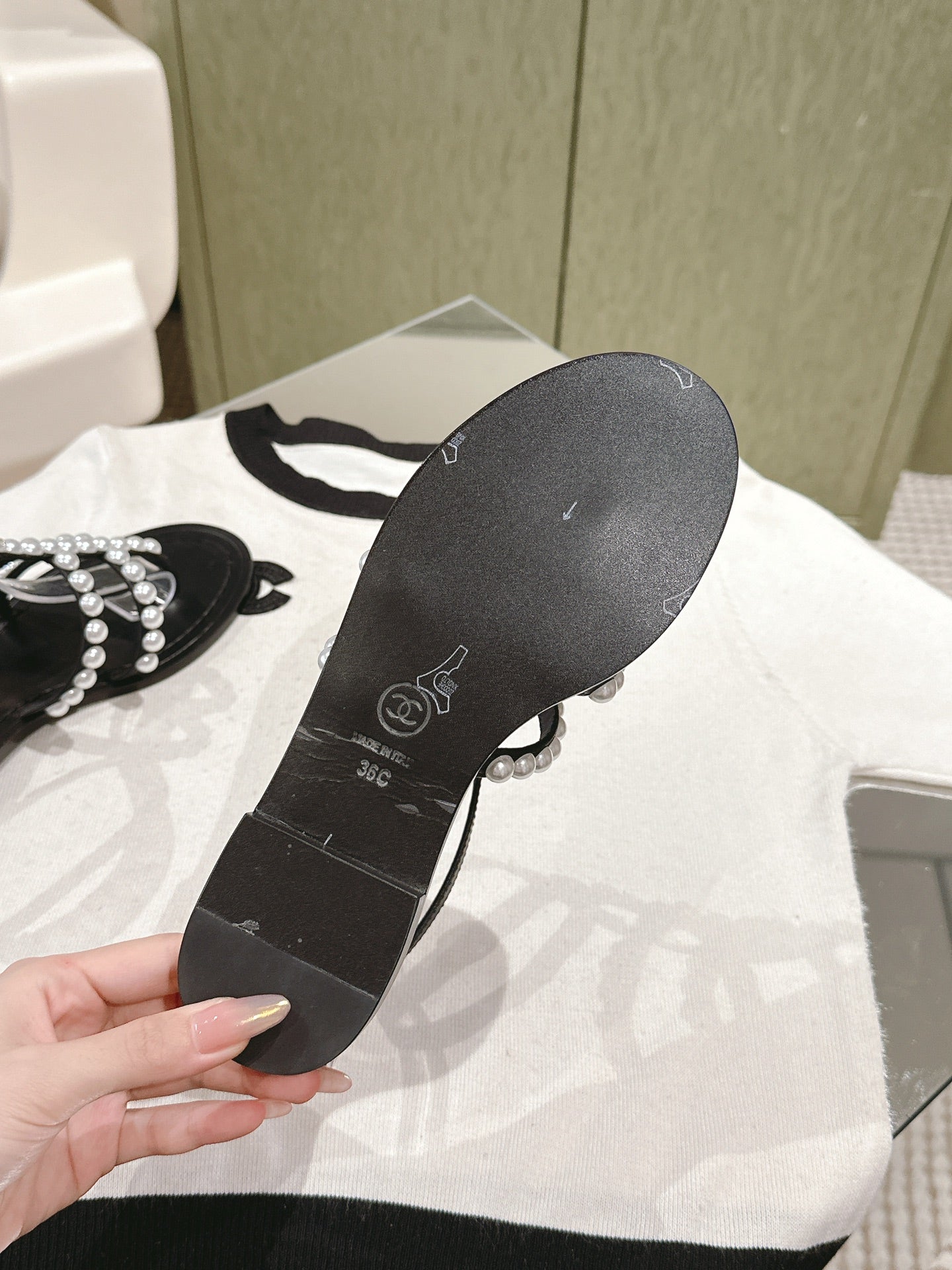 SANDALI CC PEARL ROMAN IN PELLE DI AGNELLO NERA